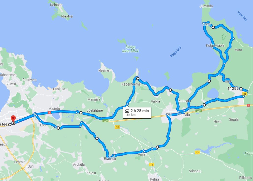 Ringiks midagi sellist näiteks: https://goo.gl/maps/2KAieuHcympHj1rV9 (Google arvab 154km)