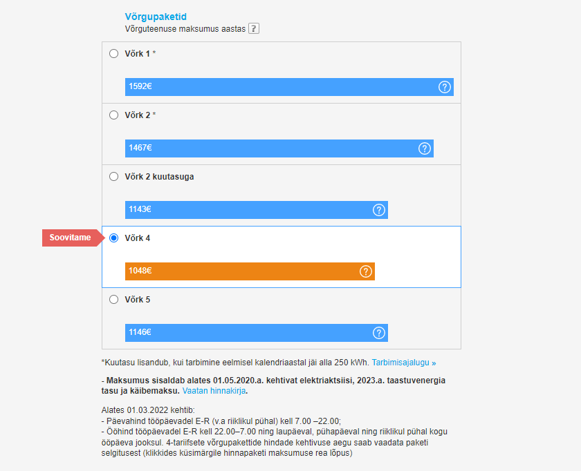 logi sisse elektrilevi.ee, vali Võrgulepingud ja -paketid ja sealt saad endale sobiva võrgupaketi valida