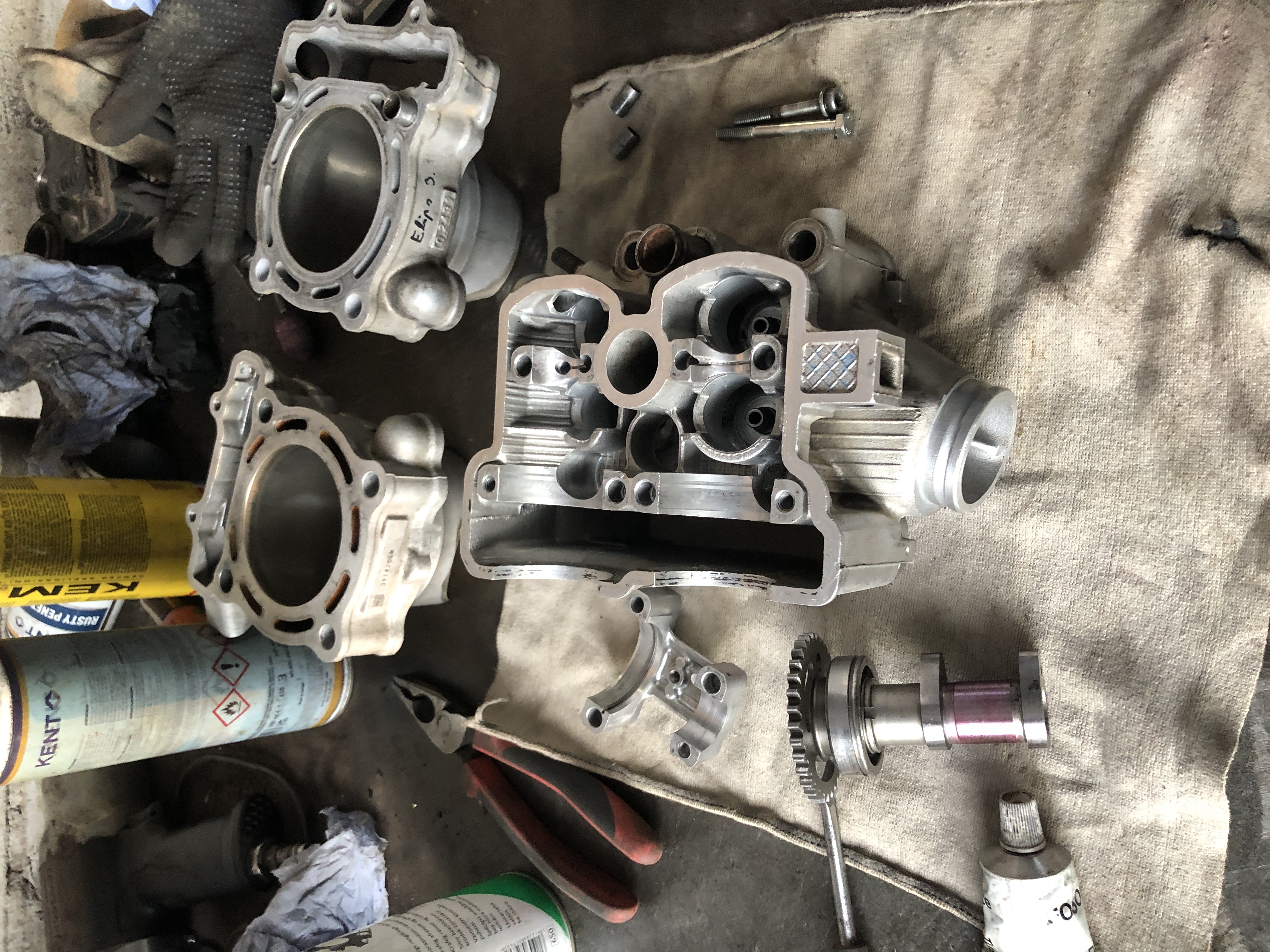 Sain ka silindri kontrollitud, ikka selleks ettenähtud riistadega. Tuli välja, et silinder on 9 sajandikku algsest mõõdust kulunud. Sain pärnust mototehnikaga tegelevast kohast endale väga ilusa ja korraliku silindri (3sajandikku algsest kulunud). Plaaniks sai mootor võtta ribadeks ja panna sinna siis uus keps ja ka uued laagrid mootorile. Hetkel pole veel sinna maani jõudnud, kuid algust on natuke tehtud.
