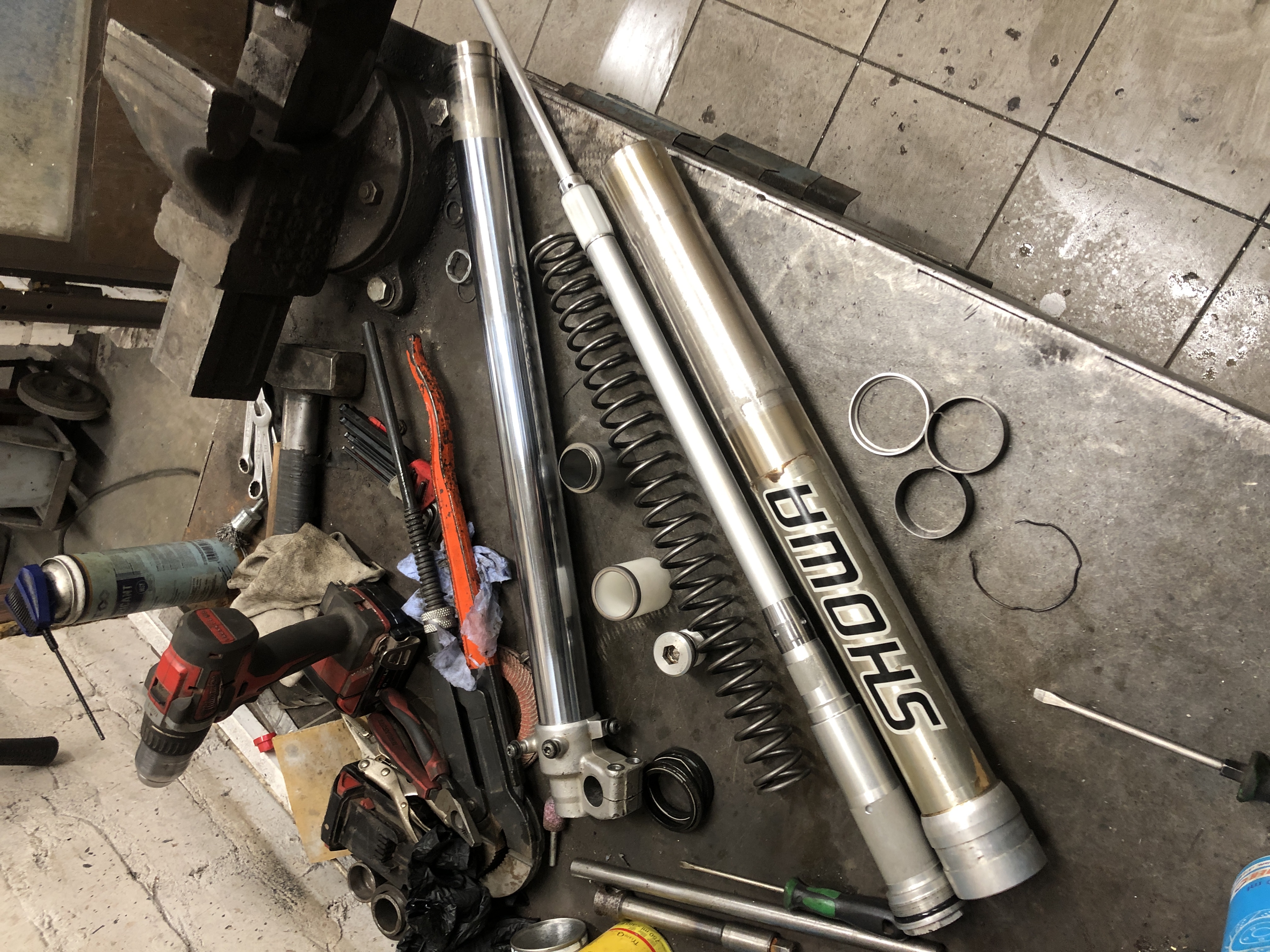 Sain suure sooja garaazi kus oma ratast teha, kõik igasugu tööriistad ka siin. Ratas on täiesti juppideks võetud