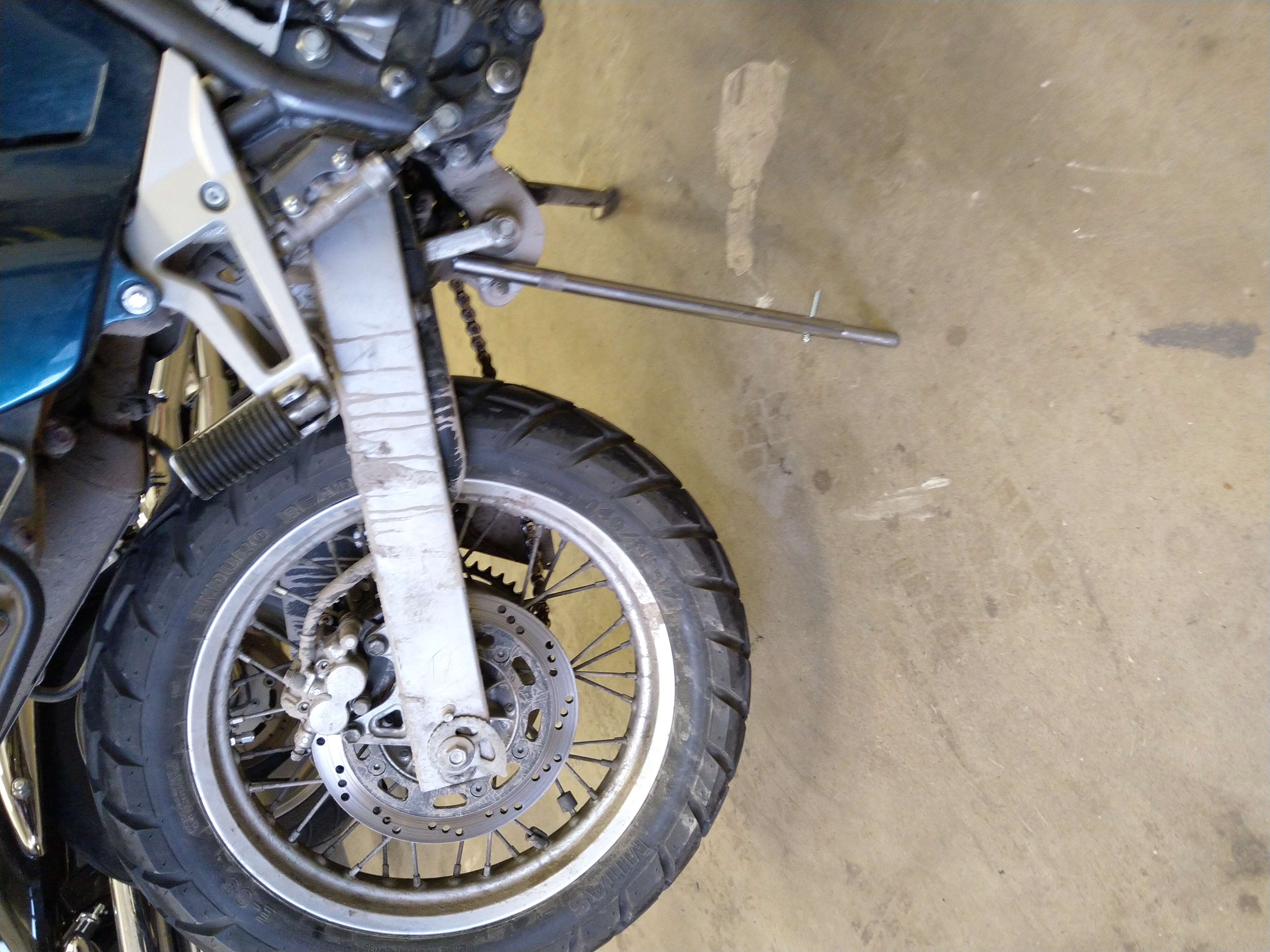 Mul on ka see isetehtud, aga puhkab juba paar aastat rahulikult garaaži seina najal - üldiselt kui asja tööpõhimõte on selge (ehk kuidas tsiklil jala otsas ükshaaval rattaid tõsta), saab seda igasugu käepärase looduses leiduva või muuks otstarbeks mõeldud nodiga asendada. Isiklikult olen sinna alla pannud tagakohvri (protip: võta tööriistad enne välja kui tsikli sinna otsa upakile ajad