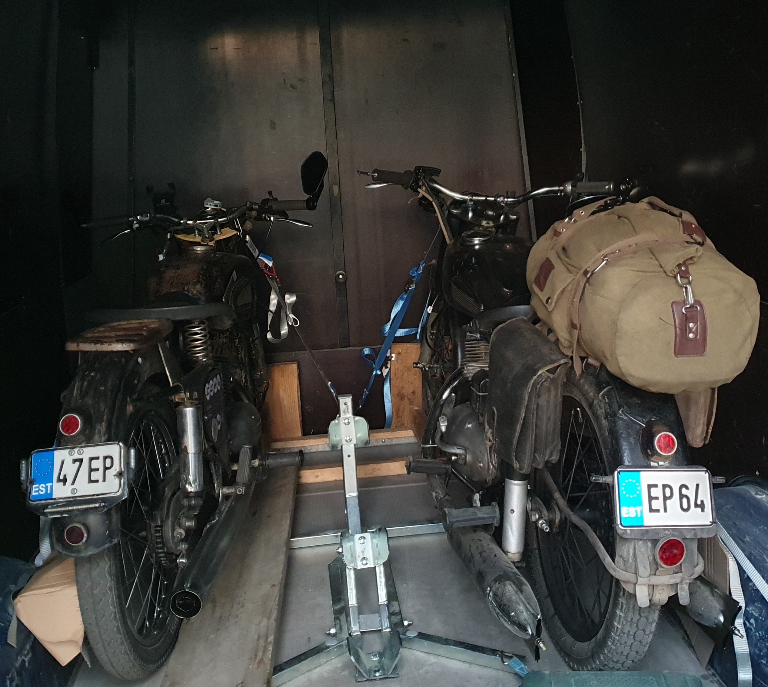 Riga7 (1972) 49cc -> Kovrovets K58 (1958) 124,7cc -> K58@100 173,7cc-> Minsk M103 (1963) 124,7cc -> Jawa 360 + velorex 560 (1972) 344cc -> Jawa 559 (1965) 248,9cc -> Kovrovets K-175 (1958) 173,7cc -> Triumph Bonneville T100 (2019) 900cc