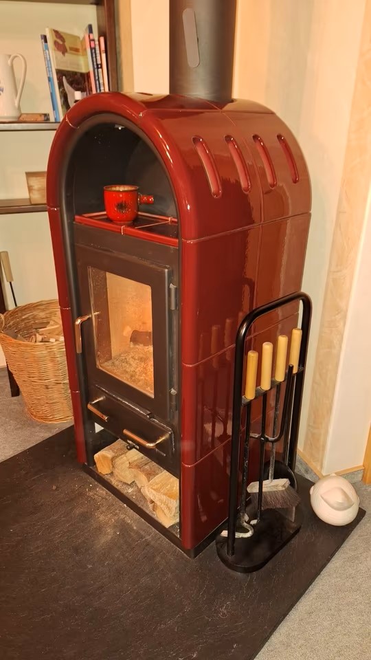Eripärase soojust hoidva kambri luugiga, mida soovi korral võimalik ka ära võtta. Kamina pealmine keraamiline plaat sai transpordi käigus väike iluviga aga seda ei sega kasutamist. Kamin ise väga korralikus seisus, puhas ja vähe kasutatud