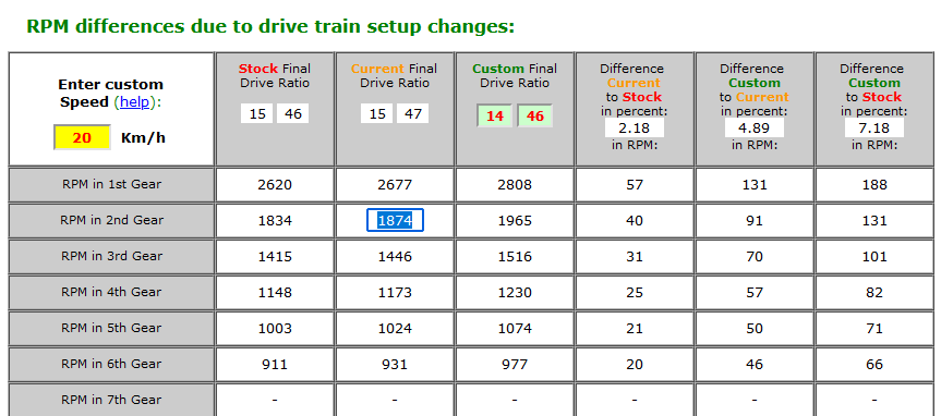 Gearing Commanderi järgi peaks mõnikümmend pööret olema erinevus nt 20km/h ca 2 %