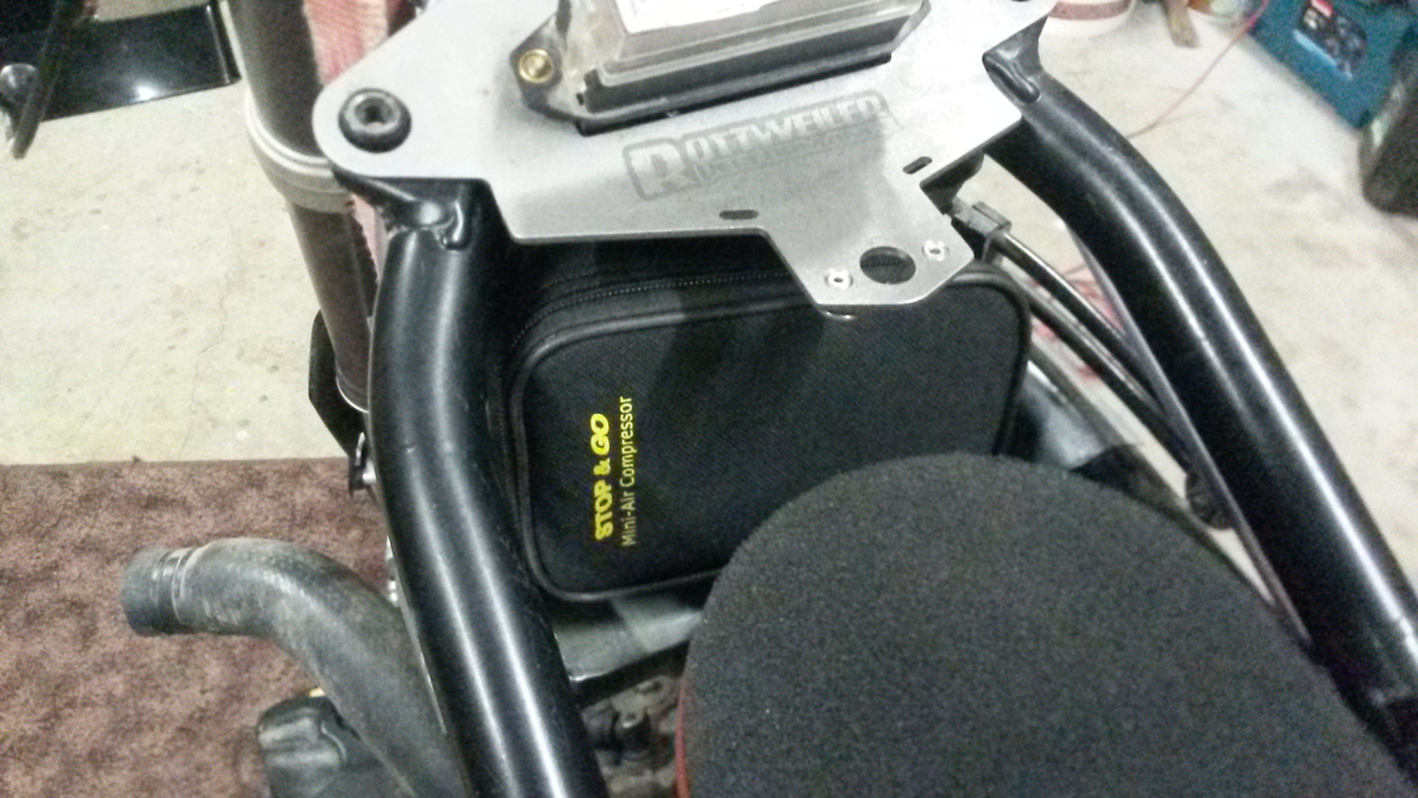 Vahepeal mingeid tihendeid oodates pusisin veel ühe plekitüki valmis. Ruum õhupuhasti ees on küll päris suur aga ega seda väga efektiivselt ära kasutada ei õnnestu. Aga kummilappimise komplekt ja minikompressor mahub sinna ära. Asi seegi, mingid asjad jälle pagasi hulgast ära sokutatud.