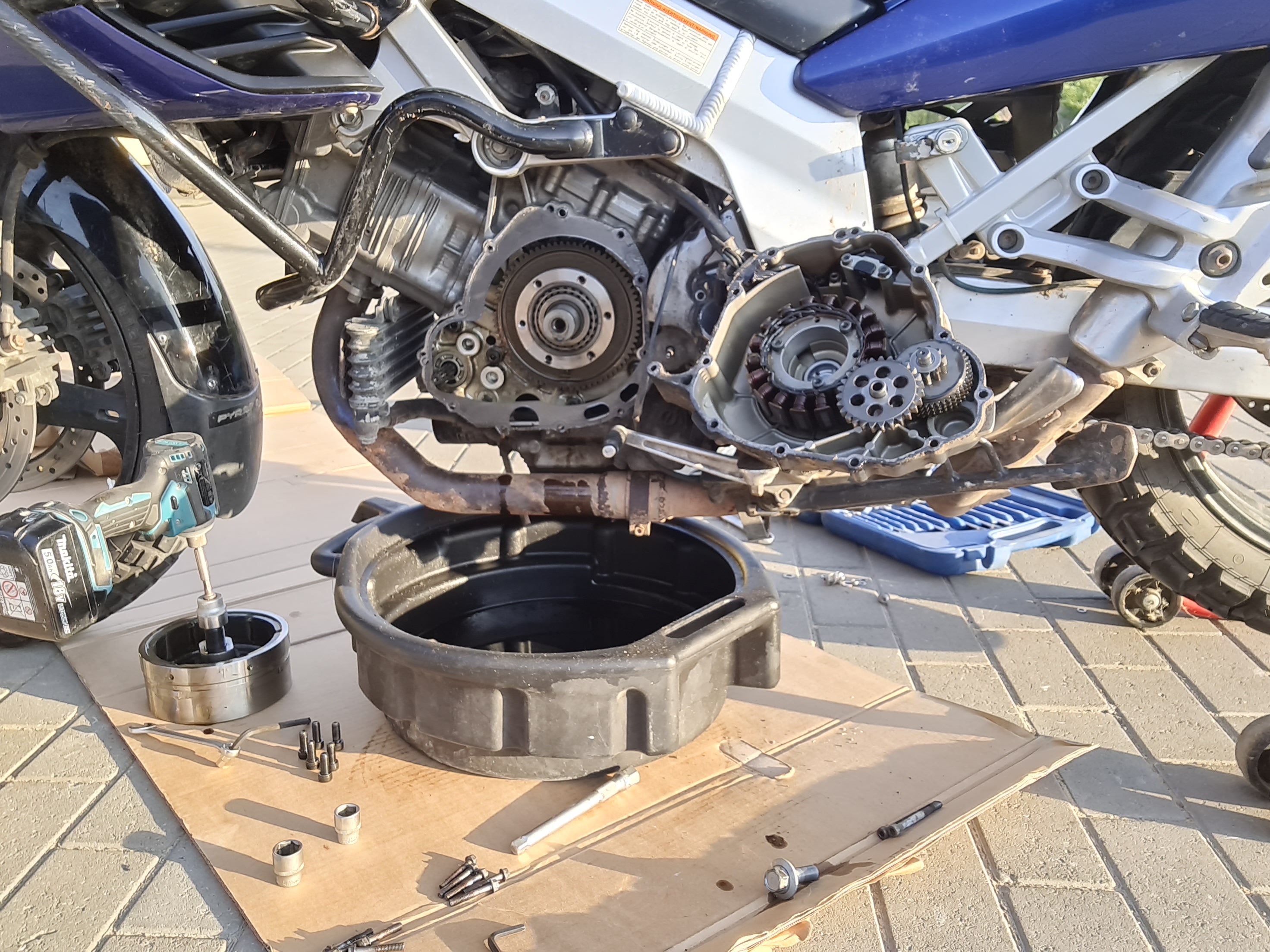 Igatahes, ajasin täna Strommi uuesti välja, sõitsin mootori kuumaks ja võtsin õlivahetuse ette.