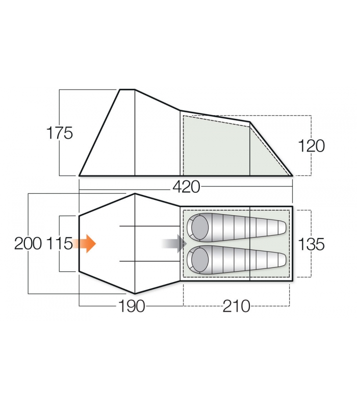 Käesoleva teema peale sobrasin jälle netis telke ja avastasin, et minu soov püsti seistes riietuda polegi ulmeline. Vango nimeline tootja on aru saanud, et püsti on tore seista ja lahendanud küsimuse enam-vähem elegantselt: magamisosa on traditsiooniliselt madal (120cm) ja eeskoda kõrge (175cm) ning lai (2m). Sellise telgi puhul saaks kahe inimese jaoks võttagi kahekohalise telgi, sest pole vaja varustust enam magamisruumi tarida. Mõõdud-kaalud mahuvad ka enam-vähem talutavtesse piiridesse.
