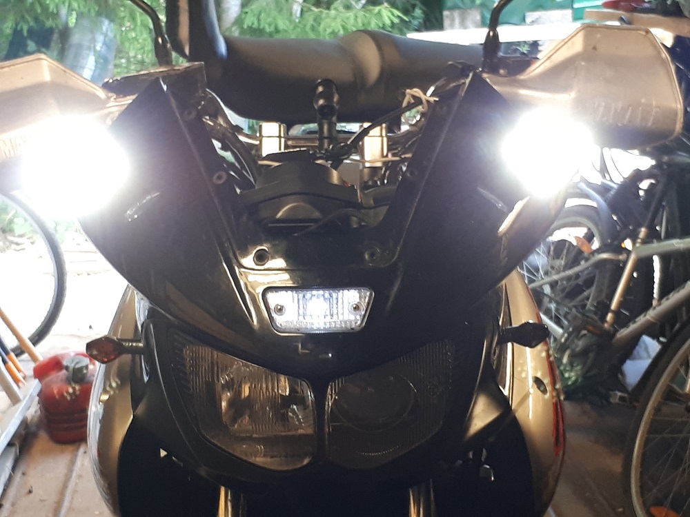 Tegin ära kogu lisakaugtulede juhtmestiku ja panin uued päevatuled.Lisasin xenon asenduskiti kaugtulele.Ballastid mahutasin kellade taha.Lisatuled jäid paigaldamata,sest vaja teha kronsa(lõikasin roostevabast välja) mis jäi keevituse taha pidama.No ei oska seda ise.Hella lisatulede tulede ballastidega läks üsna keemiaks,sest on pagana suured.Lõpuks sain need paigaldatud raami külgedele, paagi serva alla.