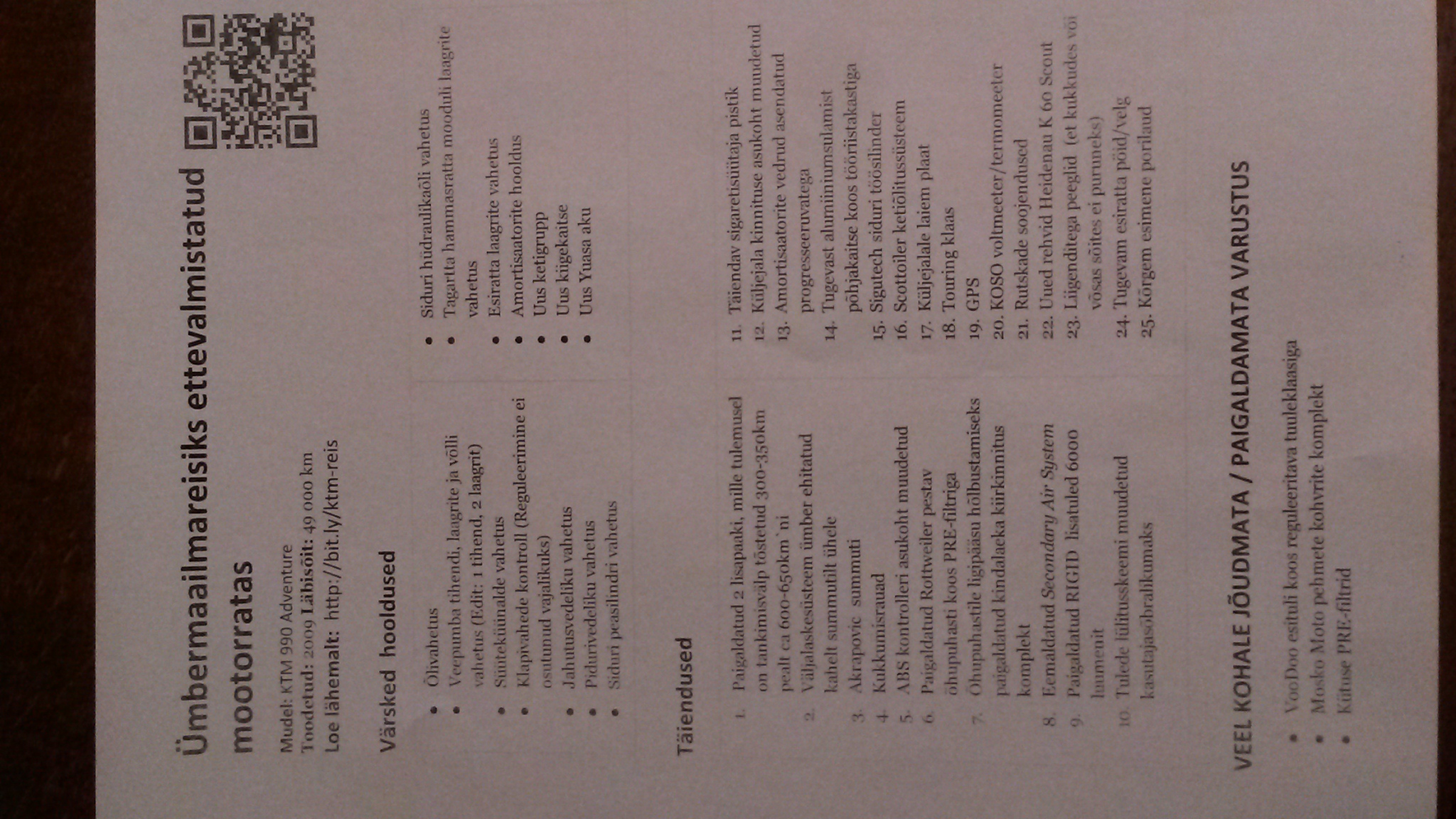 Re: KTM 990 ADV ettevalmistamine pikemaks sõiduks