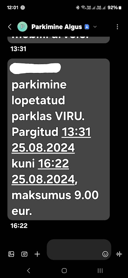Mine käi ära ja saad teada, Seal pole midagi mis sind piiraks ei sisse ega väljasõidul. Pole seal ei tõkkepuud ega muud. On ainult kaamera ja tabloo,kuhu kuvab sinu reg numbri. Ülemistes on ka sama süteem,aga seal on reaalselt see teatud arv tunde ja siis tuleb tasu. Kuna ma olen parkimist SMS-ga oma autoga enne kasutanud,siis ilmselt tuli SMS kohe paar sekundit peale sisenemist ja väljumist.