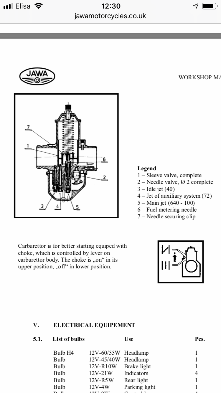 Nõela tõstmine siis rikastab segu? Ei mäleta enam kumba pidi see mõjus. Sellega peaks ehk saama parandada gaasi järsule avamisele reageerimist. Mis see külmkäivitusele paremini peaks mõjuma, nõel või ujuki tase? Jawa karburaatori nõelal vist oli 3 asendit ja praegu oli keskel, seega 1 augu võrra saab tõsta. Kui see aita, siis ilmselt peab proovima kütuse taseme muutmisega veel, võibolla mõõdan reaalse taseme ära ka enne.