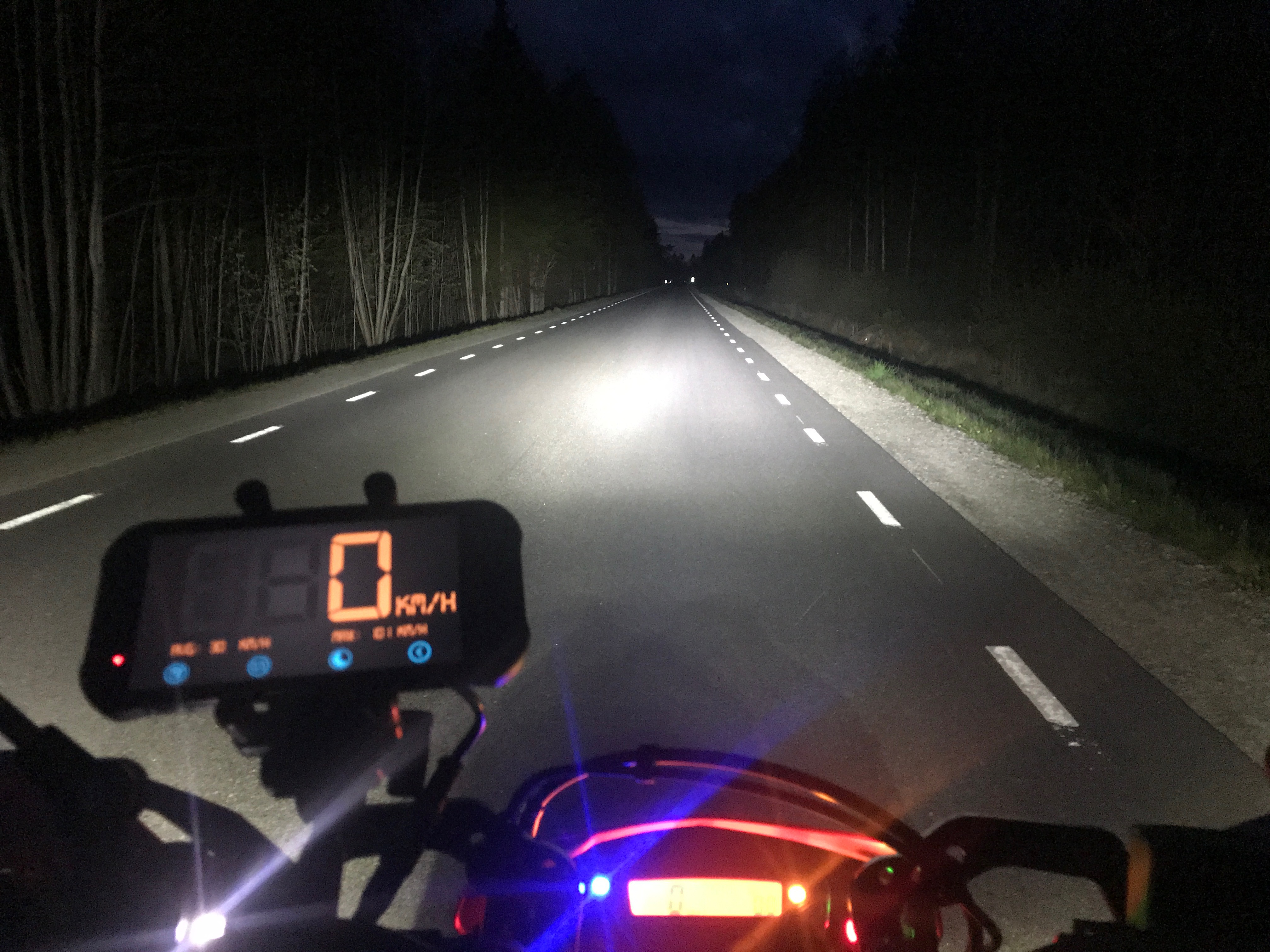 LED esitule saaga lahenes nii, et keerasin tule korralikult alla. Nüüd ei pimesta kedagi ja pooltulega sõites on mega hea valgustus. Täistulega sõites on kogu ninaesine liiga valge ja tundub nagu tahaks valgust kaugemale suunata... Ma vist paigaldan veel mingi lisatäistule lenksule, siis on mets ere nagu GSiga sõidaks.