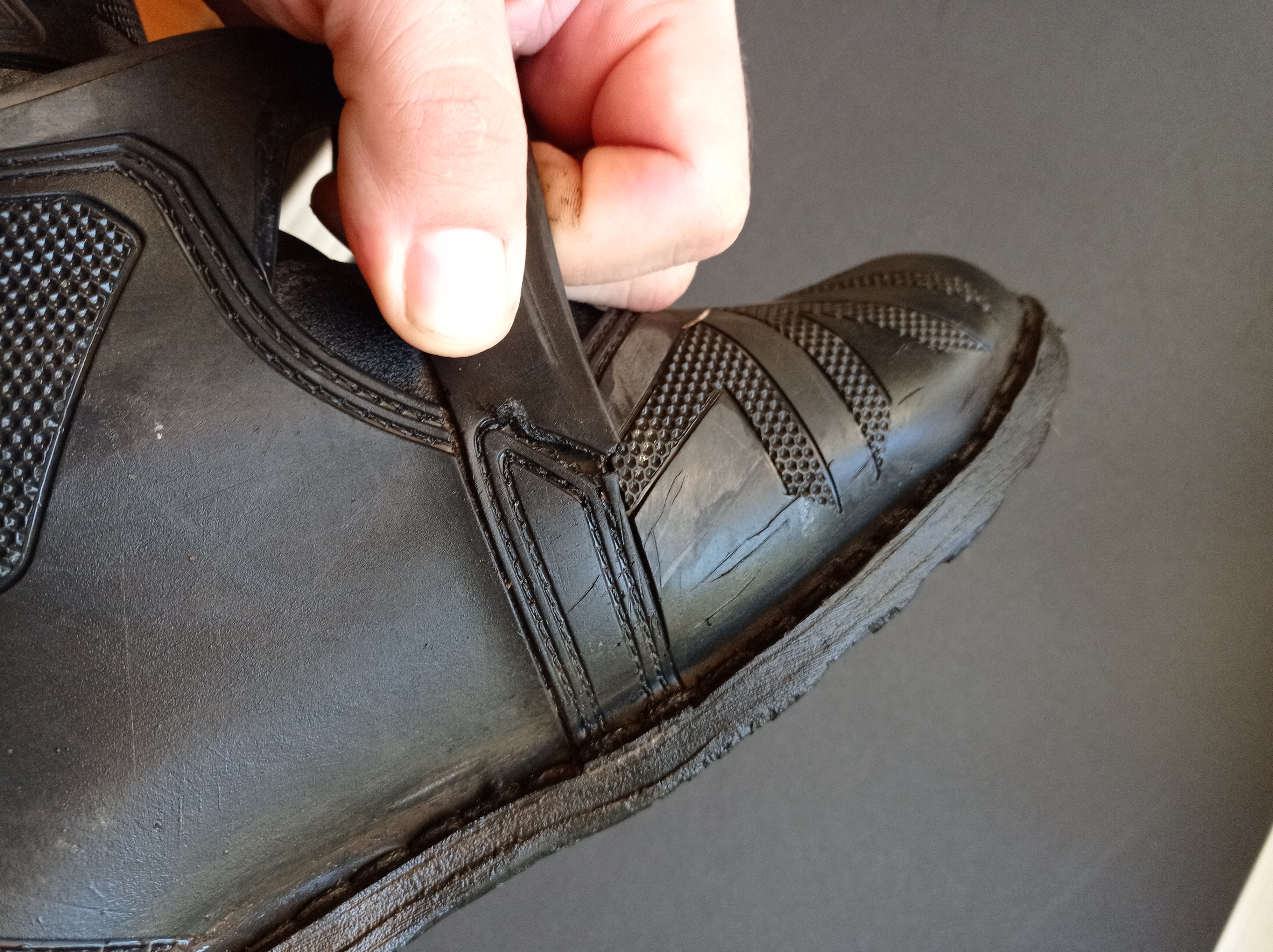 Mul on Tech 7 kõrval kapis ka Sidi Adventure 2 (ja kusagil riiulis erinevaid tänavasaapaid ka). Krossisaapa ja adventure saapa vahe on ikka väga suur. Adventure 2 saapa tagaosa on tavaline nahk, krossisaapal jäik plastik. Mul olid iga kord, kui adventure saapa ja Twiniga sai metsas käidud, kannad tagaistuja jalaraua kinnituste vastu löömisest valusad. Kindlasti tasub Adventure 2 või analoogset eelistada tänavasaapale, aga krossisaapaga ei kannata see küll mingit võrdlust. Väänamise ja jalaga tsikli alla jäämise puhul on krossisaabas ikka väga palju turvalisem.
