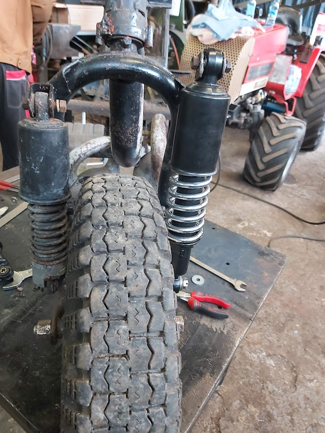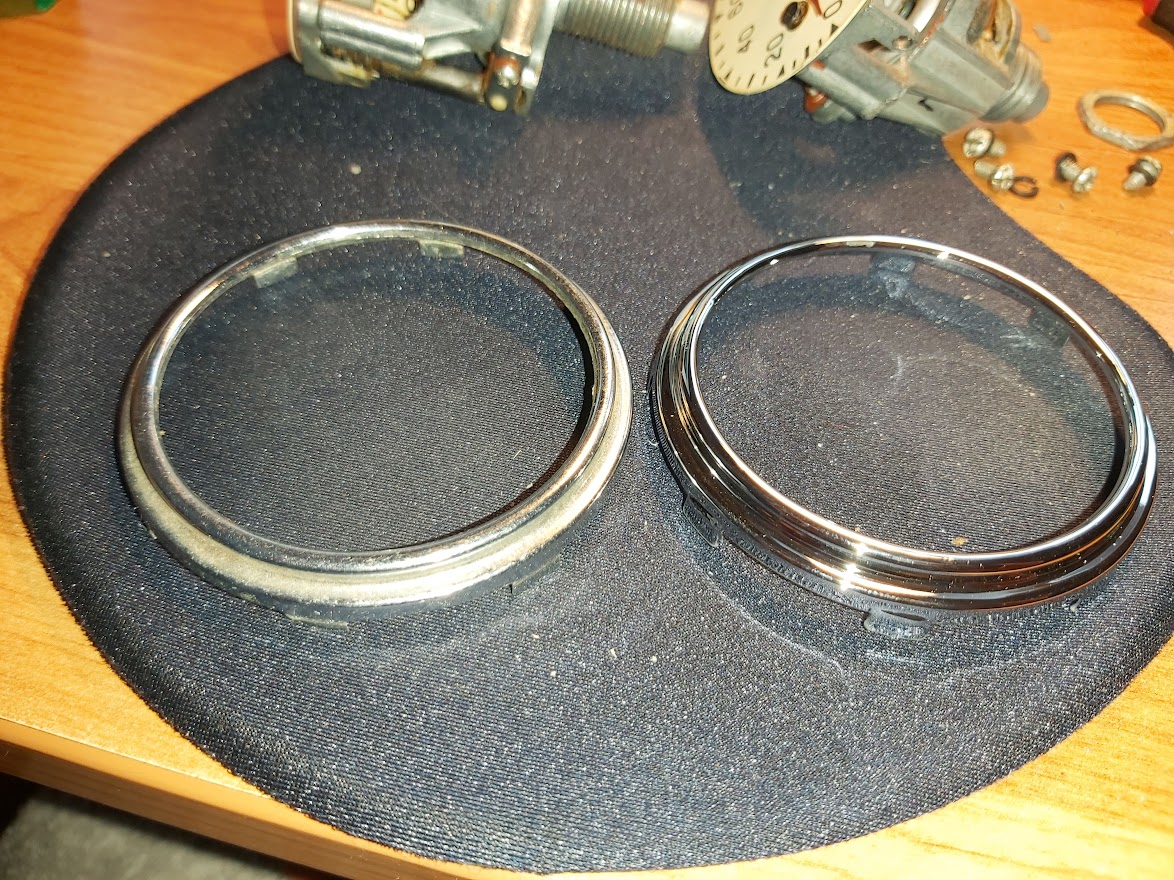 Tegin sõbraga koos uued amordi kinnitused enne kui raami lahti võtsin, sest nn uued ostetud amordid on uuema analoogi omad ja veidi pikemad. Ilusamad ka,vedrud kroomitud. Uuemaid tahtsin, sest need vanad on juba nö uuena jube vedelad ja tahtsin lihtsalt paremaid amorte-vedrusid. Samas ei tahtnud midagi liialt nähtavalt muuta, et kõrgus ja välisvaade jääks peaaegu originaaliks. Esikahvlil tegin uued kinnitused ülesse(jäävad tiiva all mitte nähtavaks) ja tagant lasin alla hargi küljes olevaid kronsasid. Esimeste amortide kõrgemale tõstmine tingis esiporitiival oleva nn tööriista kasti põhja ülespoole tõstmist nii a´5cm võrra. Oleks võinud ka nn uuema esitiiva hankida, kus seda kasti sees pole, kuid soov on see kast sinnna ikka alles jätta. Lihtsalt nüüd sinna ei mahu enam tööriistad vaid midagi 1-2cm paksust. Sain ka esimese portsu kroomitud asju üleeile kätte. Summuti mutter, heeblid ja nende kinnitused, spidovõru ja kapoti käepide. No asjad said ikka vapustavalt ilusad ja ilmselgelt paremad kui nad uuena olid. Summuti, pakiraam, esitule võru ja suunatule võrud on veel nö töös. Enne kroomimist kui vana kroom oli eemaldatud Vahepeal õnnestus e-bayst osta nö nõukaaegne tutikas spido(enda omal odo numbrid pruuniks ja laiguliseks tõmmanud ja puhtaks ei saa) ning selle nn uue spido kroom võru oli nagu käkk võrreldes värskelt kroomituga. Ostetud spido oli ilmselt natuke niiskes seisnud ja vajas ka veidi puhastamist-määrimist (trossist tulev võll oli kinni) Panin enda nö vana spido korpuse, ostetud spido sisu ja värskelt kroomitud võru. Tulemus sai minu meelest perfektne.