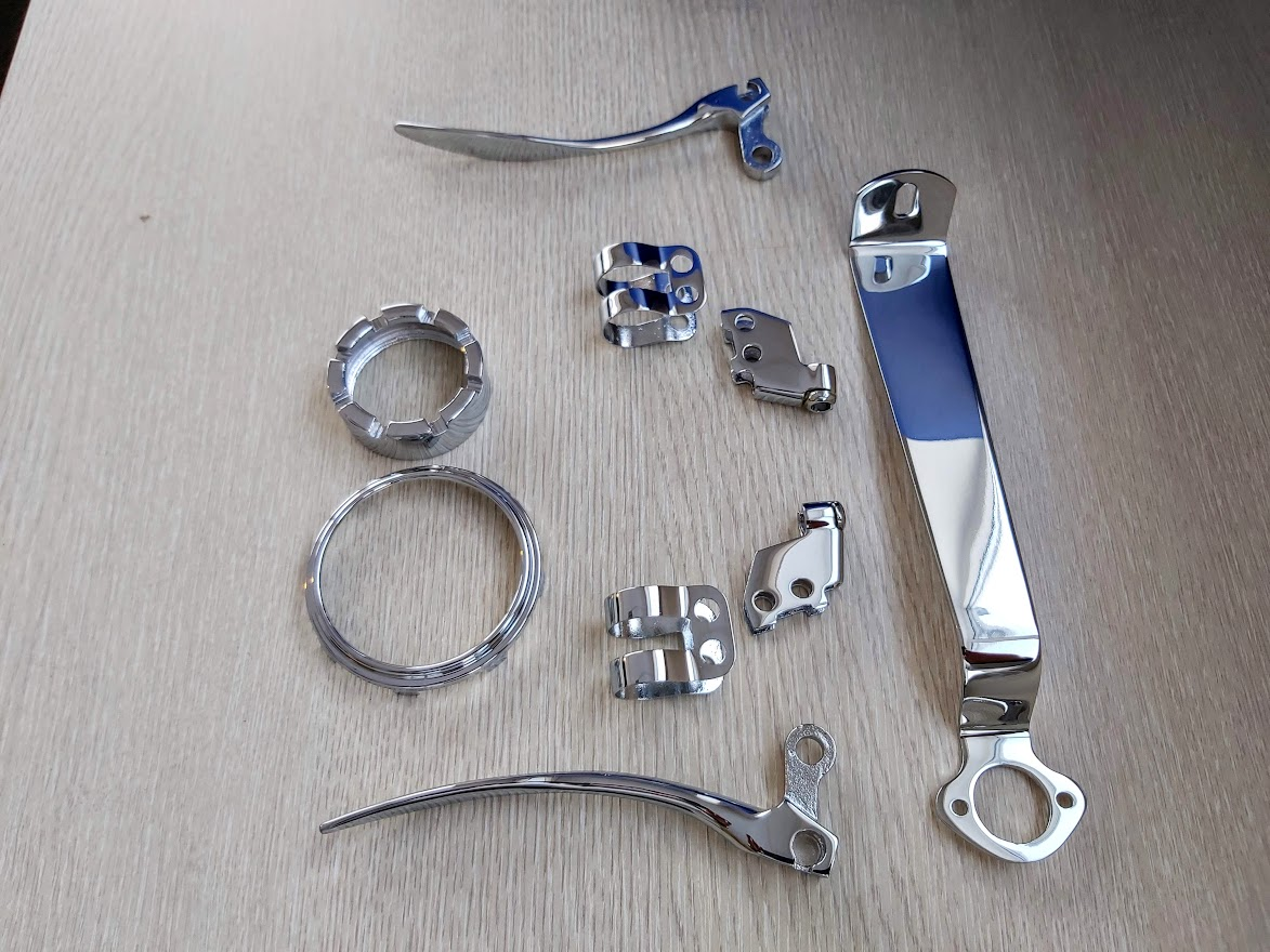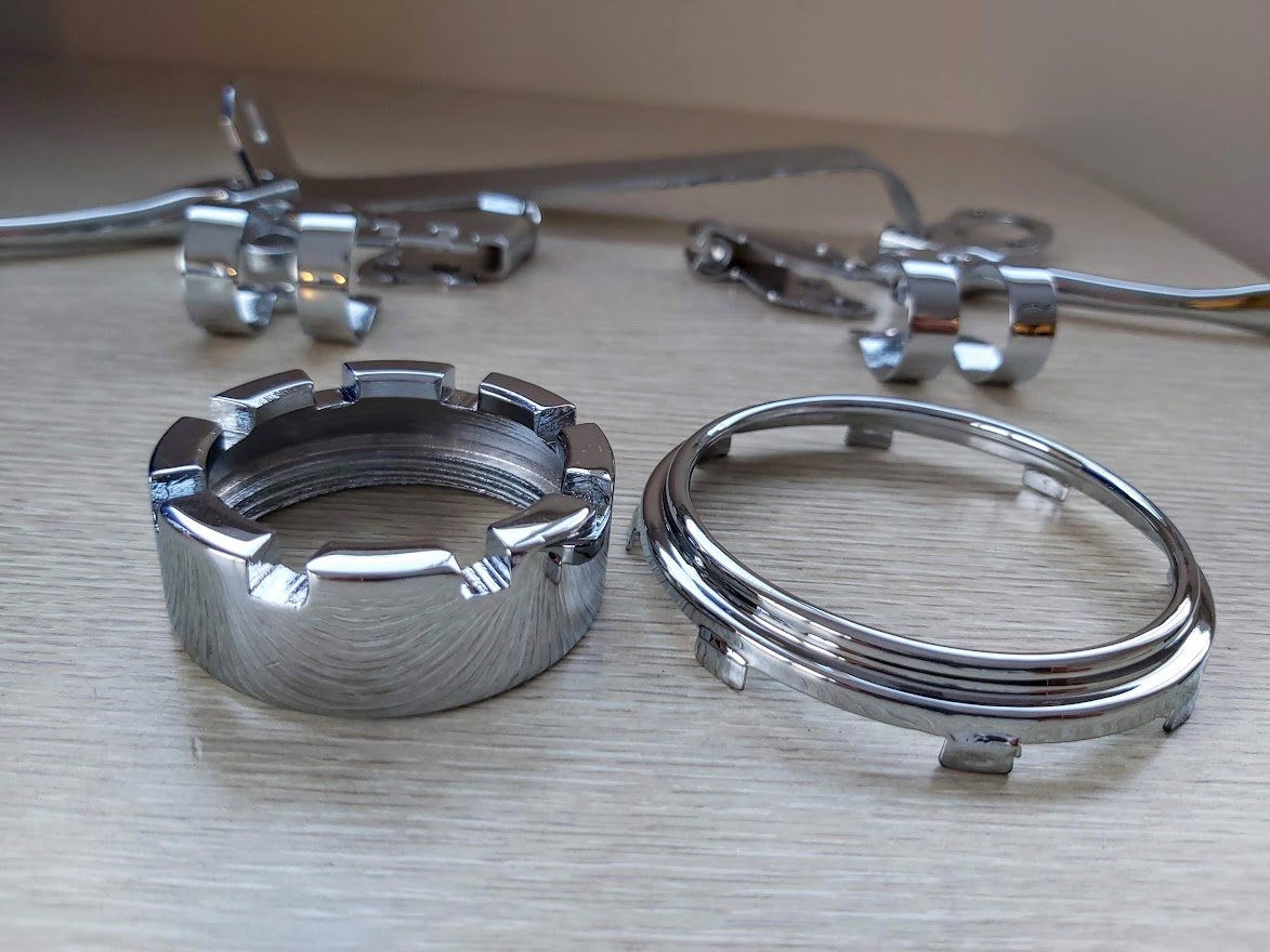 Tulemus on tõesti väga hea. Tal on igale asjale konkreetne hind pakkumises, aga enne võtab vana kroomi maha ja siis ütleb. Poleks elus uskunud, et vana kroomi all veel nii plaju roostet oli, kuigi pealt oli veel sile. Minu puhul pole see pelgalt kroomimine,see on pigem restaureerimine ja siis kroomimine. Need asjad on tehtud kaks korda vasega, iga korra järel lihvitud-poleeritud, siis vist oli nikkel ja veel vask ning siis alles kroom. heebleid saaks osta mingi kroomimisest odavama hinnga ka,kuid need on nii kehvad,et laseks ikka üle teha. Pakiraam oli sel juba uuena nii porr, et vajaks tegemist nii ehk naa.