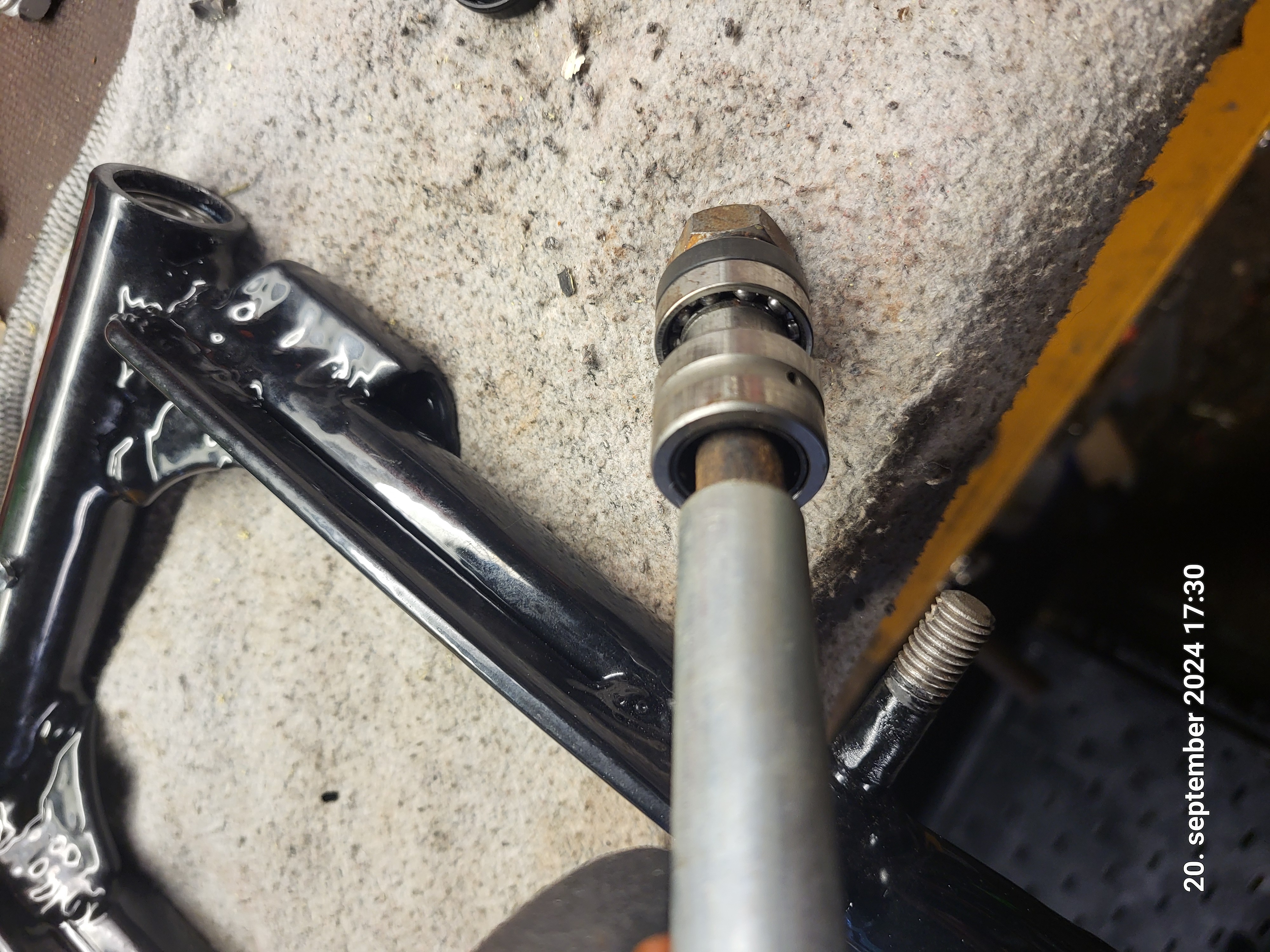 See eeldanuks mingit täpset sättimist ja ilmselt ikkagi uue kiigetoru valmistamist, sest originaalis puudusid pesad puksile. Sile toru, suht õhukese seinaga oli. Laagritega sai lihtsalt odavalt ja piisavalt hästi ka fiseerituna selle kiige.