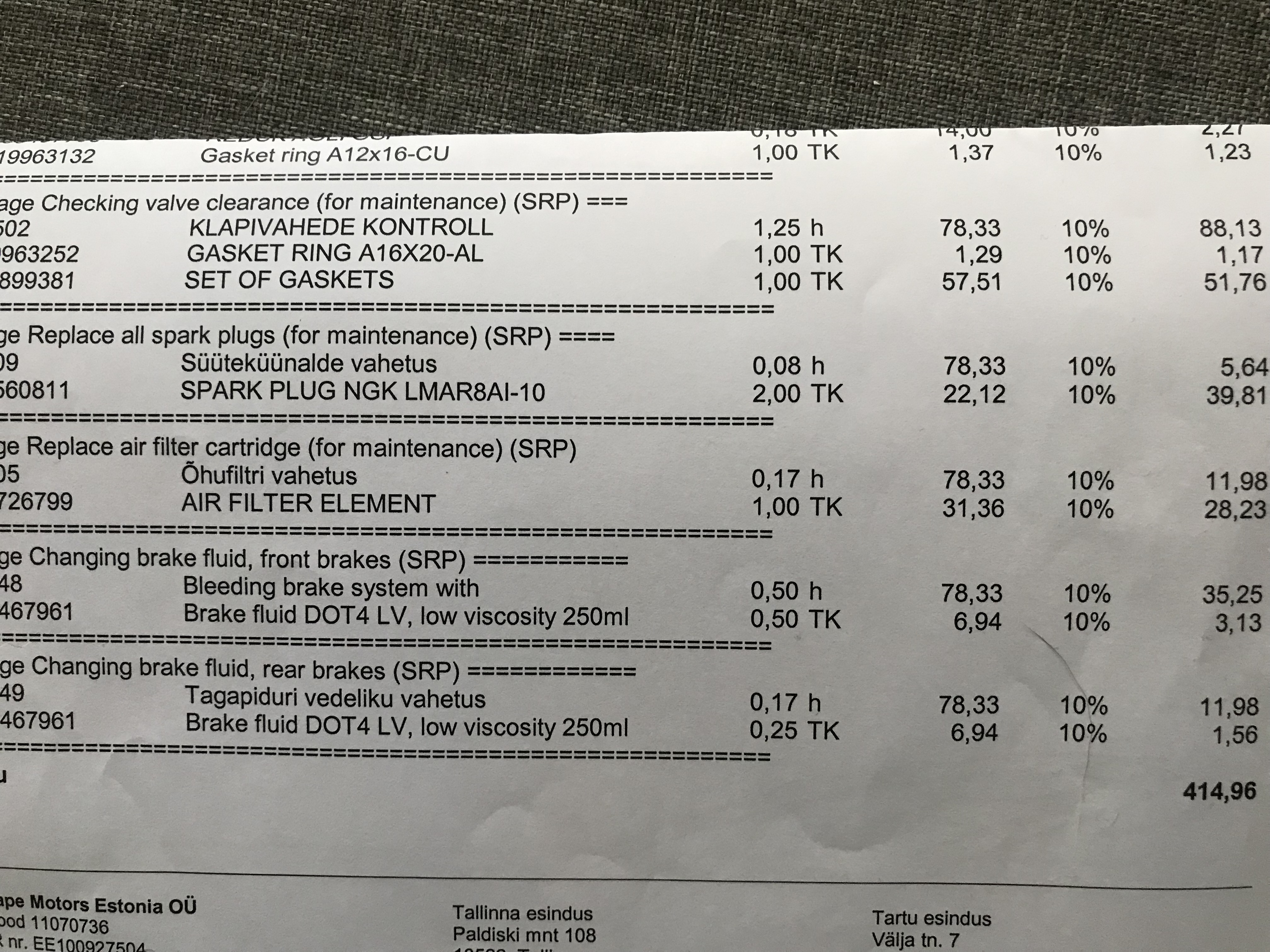 Ten points! Kunagi vaatasin ajaviiteks antud tegelase (video allpool) autoparandamise videosid ning kutt räägib väga hästi ära, miks ta üht või teist marki masinaid ei võta. Ei ole majanduslikult mõistlik iga töö jaoks spets tööriistu osta ning samuti ei jõua sa endale riiulisse mingeid kõige rohkem minevaid varuosi soetada. Rääkimata töövõtete omandamisest, et tööd kiiremini teha. Tsiklite puhul asi veidi lihtsam, tõmmitsaid, rakiseid jms vidinaid vähem tarvis. Aga siiski, omajagu know-howd ja aega kulub, et teatud pidurisupportitest õhk kätte saada. Palju sa sellest kliendile töötunde arvele saad kirjutada, kui kulunud asja parandamiseks kulubki rohkem töötunde kui klient eeldab.