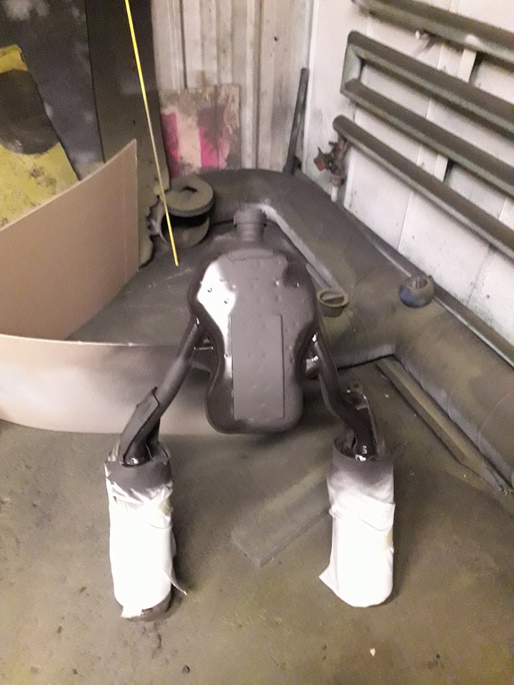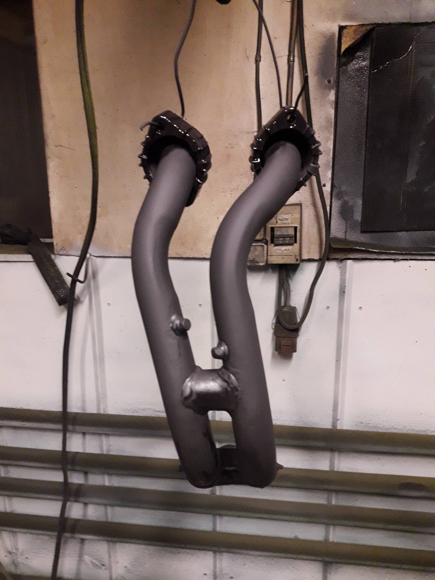Väljalase puhastatud, üle keevitatud ja värvitud: