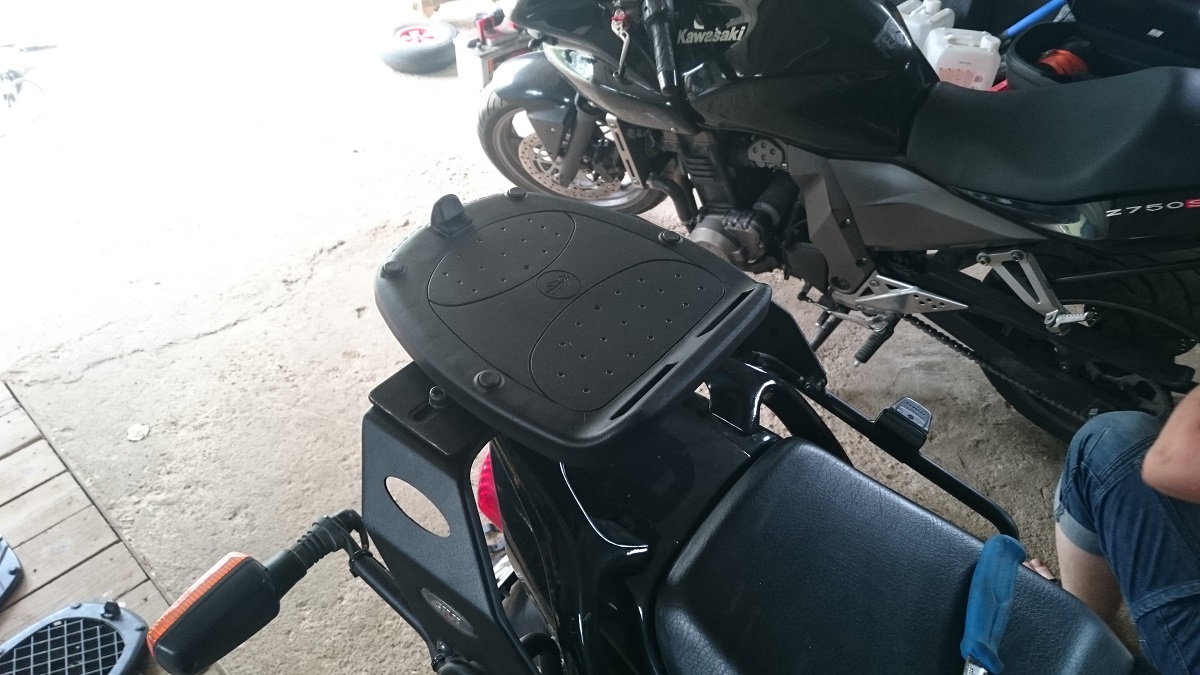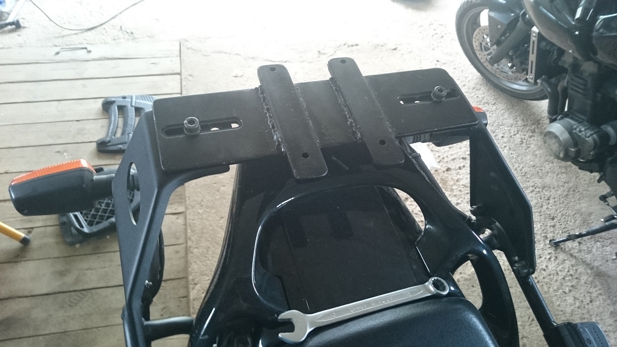 Kuna ma garaažis juba olin siis vahetasin uuesti välja tagakohvri kinnitusplaadi. Kuna ühel Givi kinnitusplaadil mis mul garaažis oli on lukusti polditav siis lasin sõbral teha uue lukusti mis võimaldaks Givi Monokey raamile kinnitada ka Kappa kohvreid. See vahe adapter mis sai eelmine või üleelmine aasta tehtud Kappa kinnitusplaadi jaoks ei olnud esteetiline + ega Kappa plaat seda kohvrit väga tihedalt kinni ka ei hoidnud.