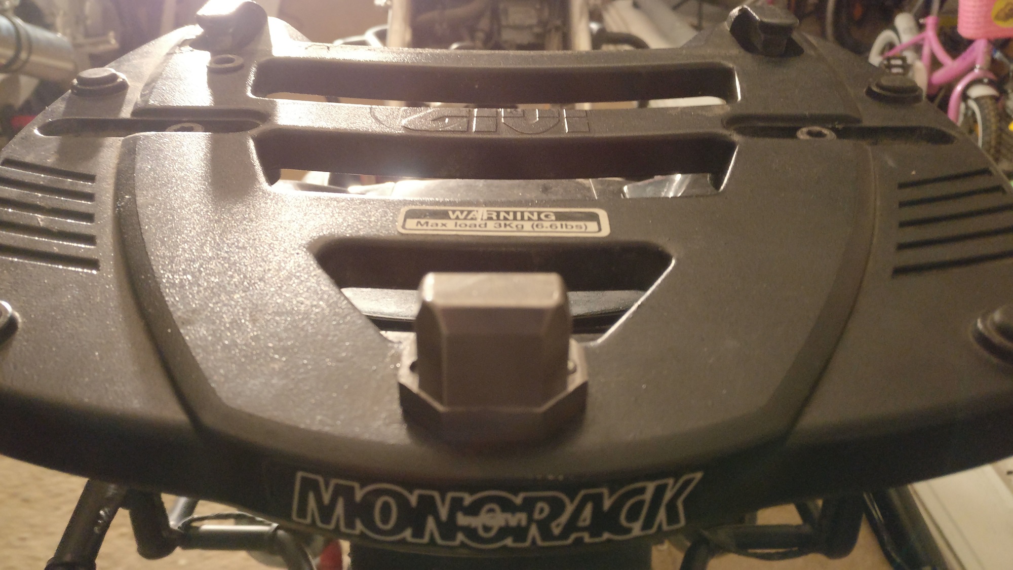Kuna ma garaažis juba olin siis vahetasin uuesti välja tagakohvri kinnitusplaadi. Kuna ühel Givi kinnitusplaadil mis mul garaažis oli on lukusti polditav siis lasin sõbral teha uue lukusti mis võimaldaks Givi Monokey raamile kinnitada ka Kappa kohvreid. See vahe adapter mis sai eelmine või üleelmine aasta tehtud Kappa kinnitusplaadi jaoks ei olnud esteetiline + ega Kappa plaat seda kohvrit väga tihedalt kinni ka ei hoidnud.