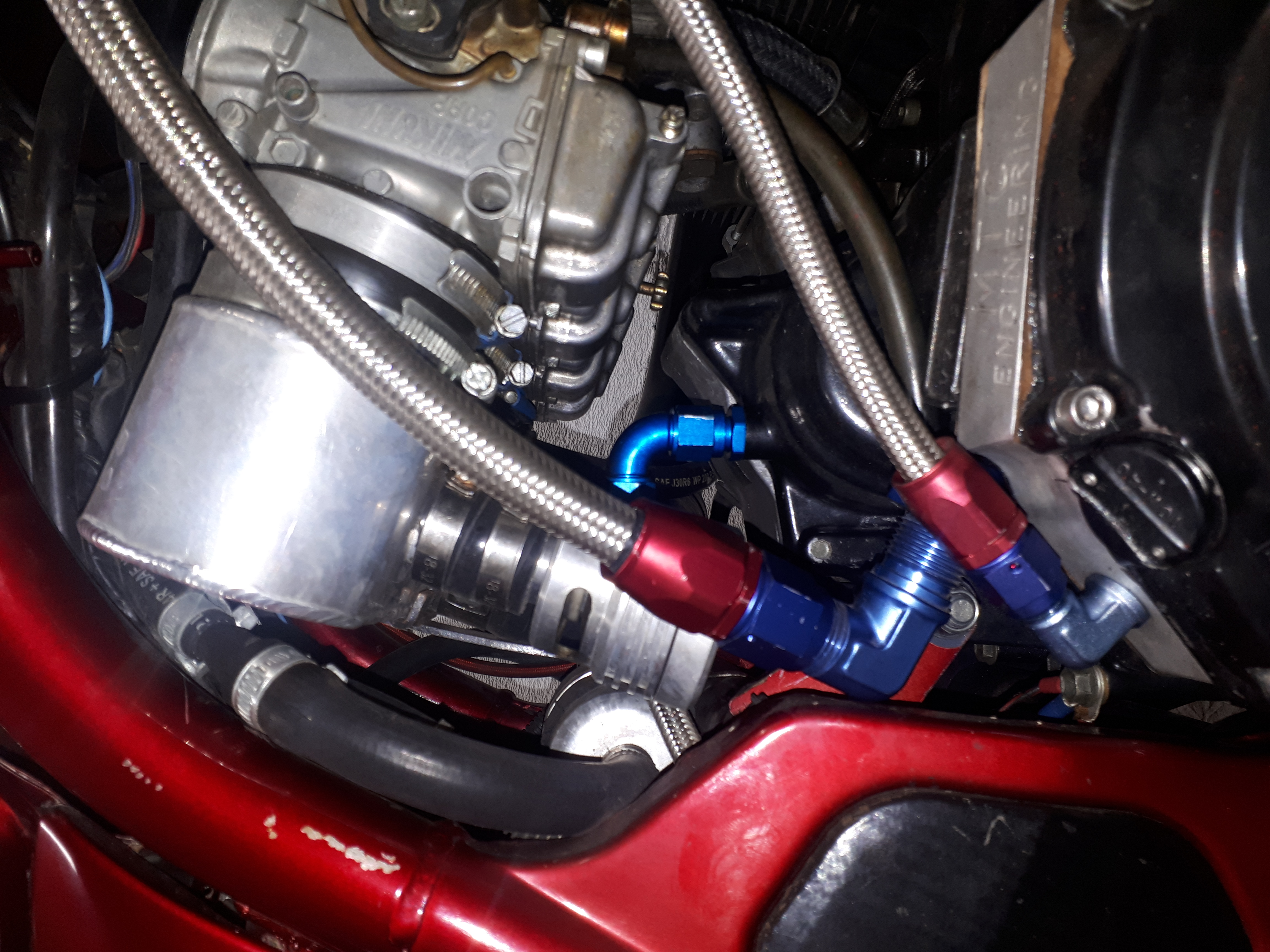 Kinnitus tuleb jalaraua tagant ja jääb suht nähtamatu, Vahetasin veel lisa-karterituulutuse toru asukoha ära, et oleks mugavam õlikorki kasutada. AN näeb parem välja ka kui san-tehniline voolik