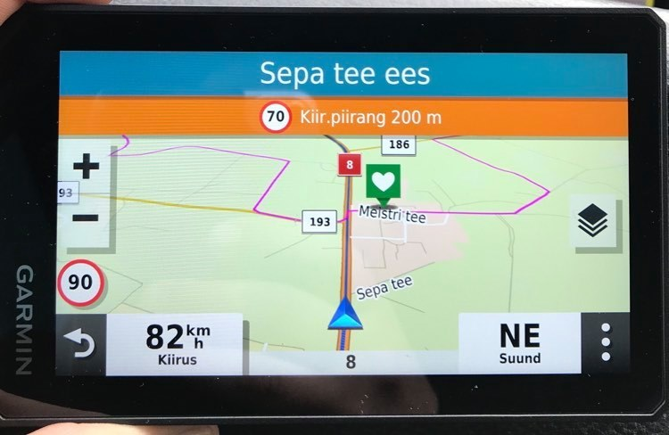 Seda oranzi teadet ekraanil lähenevast kiirusepiirangust ei saagi maha,seda ütles ka garmini esindus.