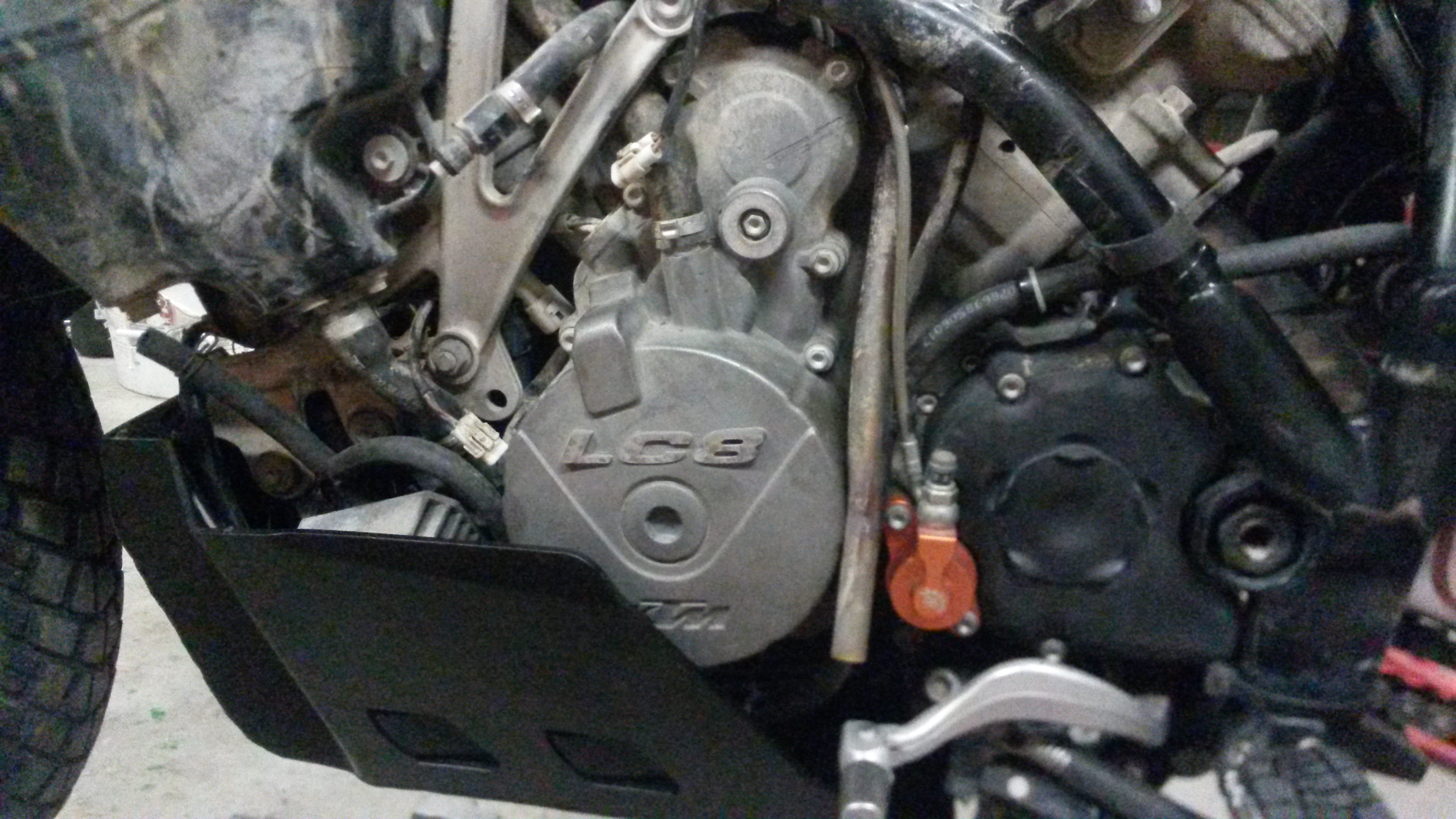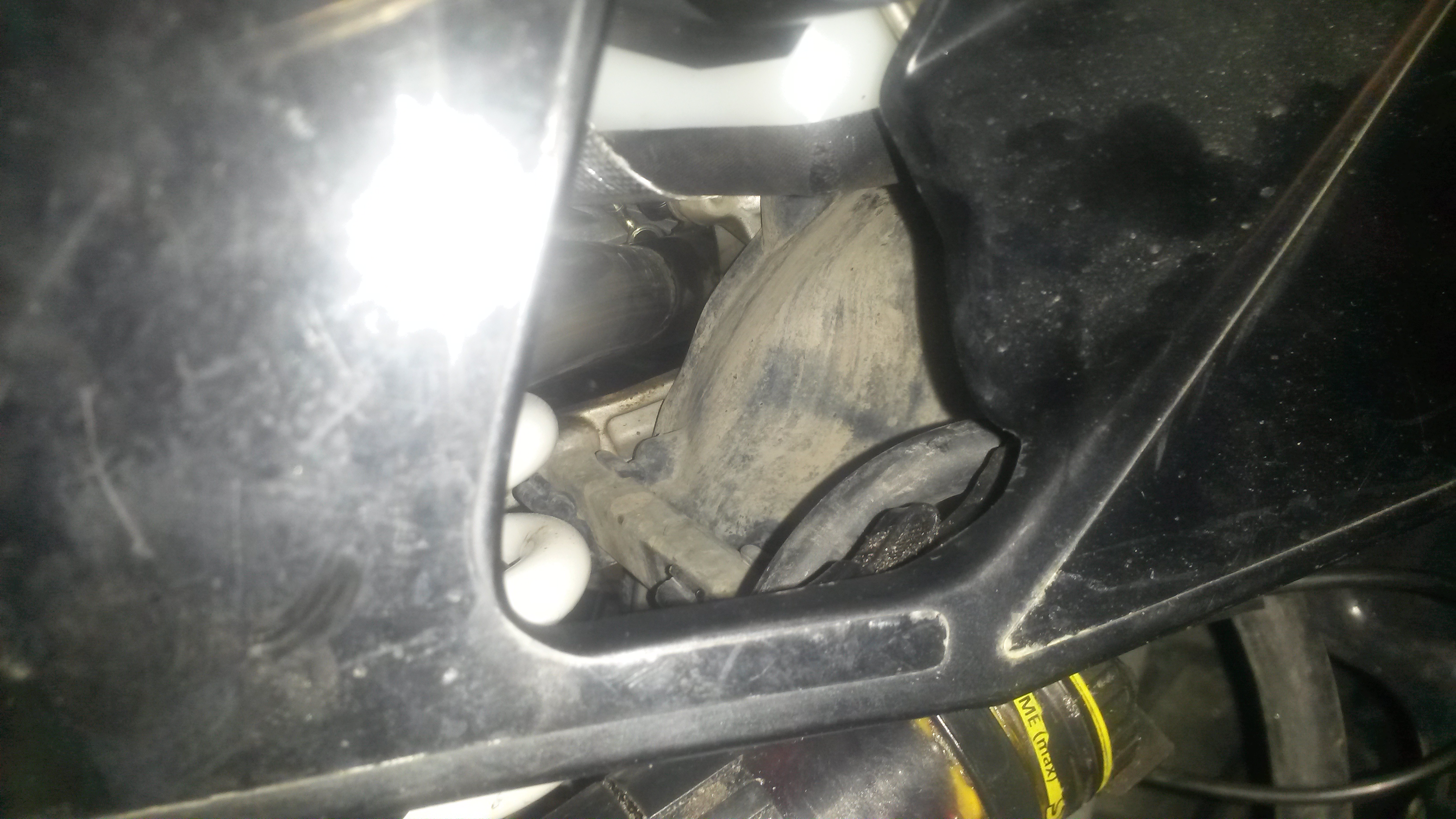 Järgmised tegevused on aku vahetus, õli vahetus, põhjakaitse vahetus, klappide regull ( kuna ratas on kenasti laiali siis paras moment selleks) , õhupuhasti eemaldamine, uue paigaldus koos mõningate asjade eemaldamisega, veepumba tihendi ja võlli vahetus, lisatulede paigaldus (juba kohal) ja ABSi paigaldus uude kohta.