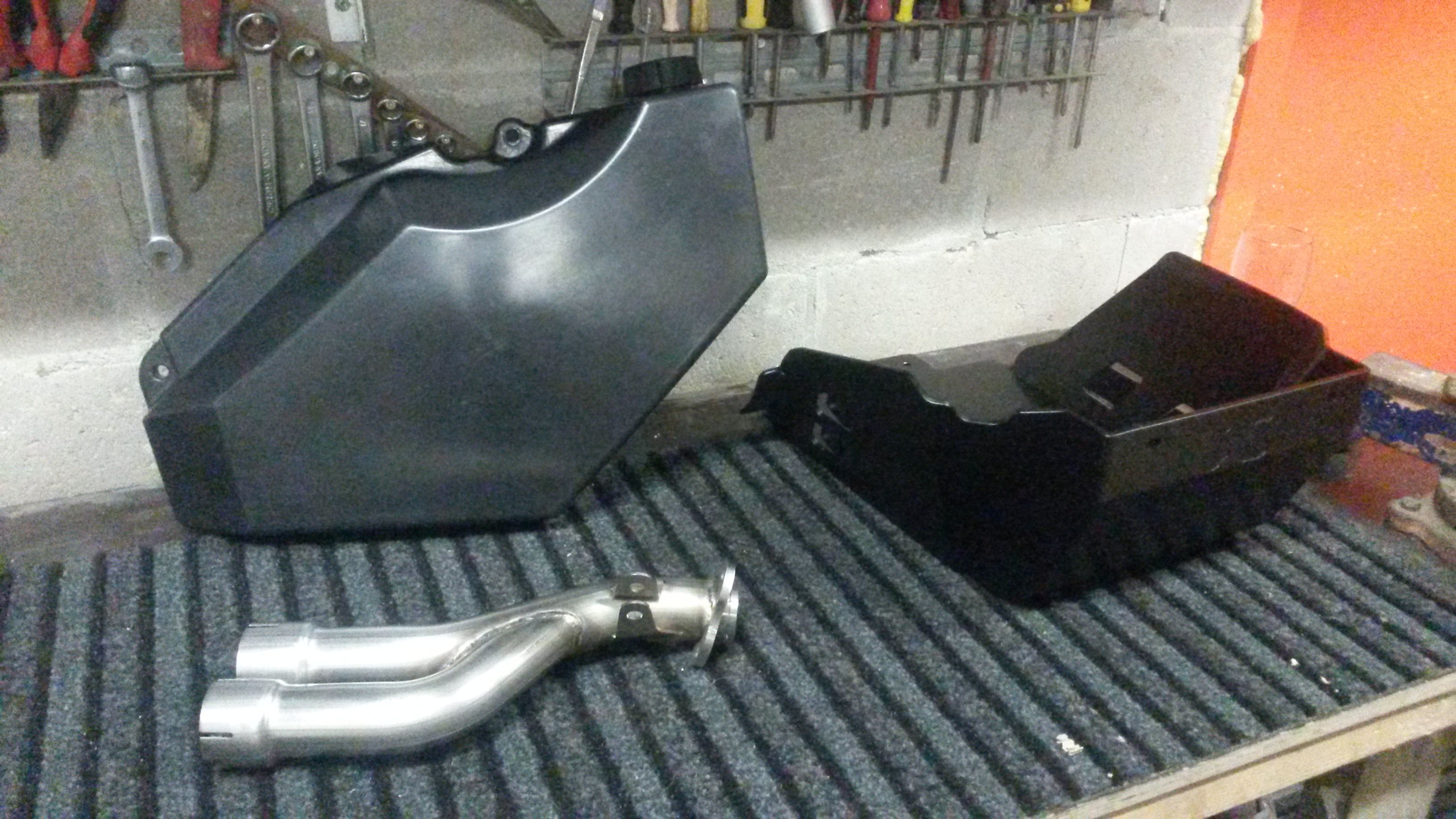 Nüüd kus vasak sumpa on läinud, on ruumi kohe kõvasti juurde tulnud. Isegi peale paagi paigaldamist. Varem oli tükk tegu et Scottoiler kuhugi mahutada. Praegu ruumi nii laialt sadulaaluse paagi ja amordi vahel et mõtle või mingi panipaik sinna välja. Paak on tehtud kahe sumpa arvestusega, eemaldatud leegitoru kohale oleks paagi kuju täiendades veel ca 1l kütust mahtunud