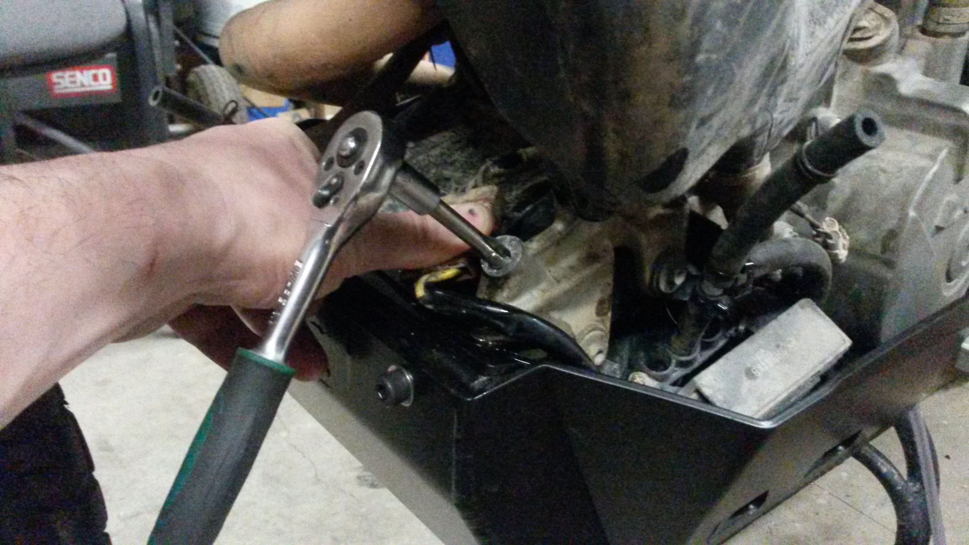 Järgmised tegevused on aku vahetus, õli vahetus, põhjakaitse vahetus, klappide regull ( kuna ratas on kenasti laiali siis paras moment selleks) , õhupuhasti eemaldamine, uue paigaldus koos mõningate asjade eemaldamisega, veepumba tihendi ja võlli vahetus, lisatulede paigaldus (juba kohal) ja ABSi paigaldus uude kohta.