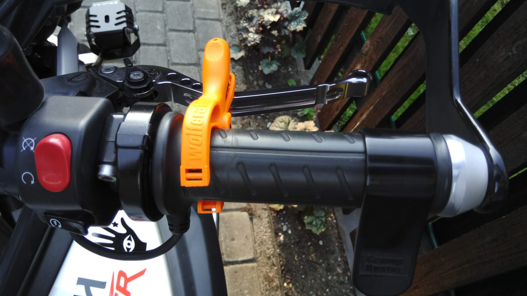 Ostsin Mäci soovituse järgi ka selle ehituspoest Wolcrafti jublaka. Maanteel töötab täitsa rahuldavalt ja midagi ohtliku küll ei näinud. Kuna ta on nii lihtsalt eemaldatav siis valdavalt on ta mul lihtsalt gaasirutska kõrvale juhtrauale pandud ja kui tean, et 100 kilomeetrit trassi lasta siis tõstan 5cm ümber ja ongi olemas. Minu vajadustele ideaalne lahendus 2 euriga.