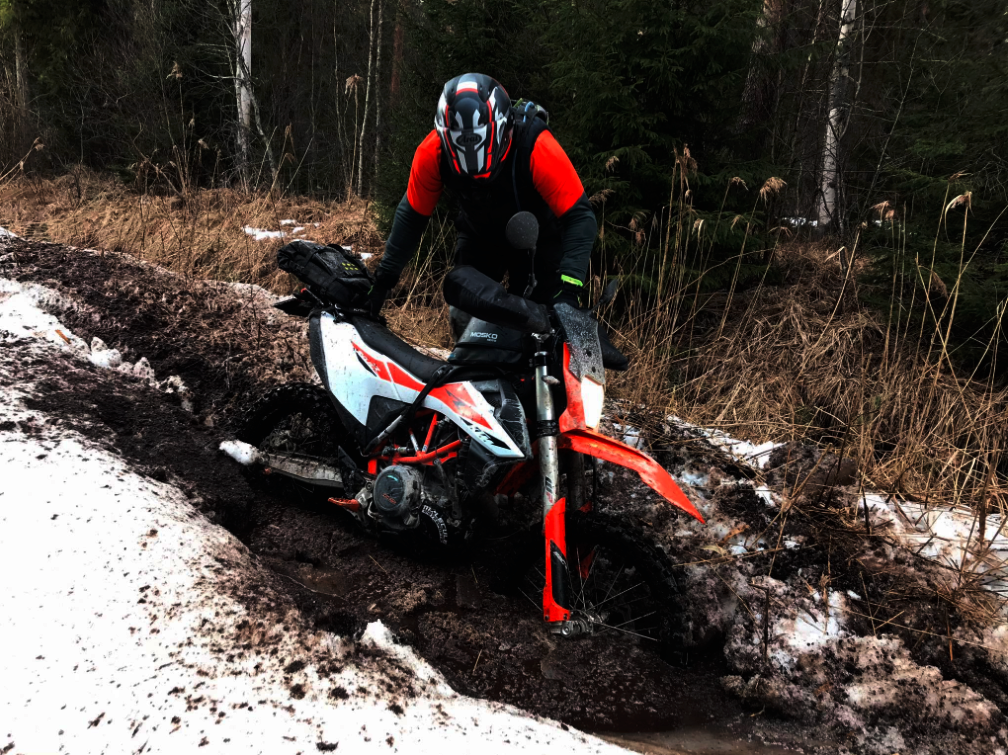 Rehvid võiks olla sellised, mis aprillis-mais ning oktoobris-novembris mudases kohas tsiklit edasi kerivad, muul ajal on suvaliste kulunud TKC80-tega kergesti tehtav.