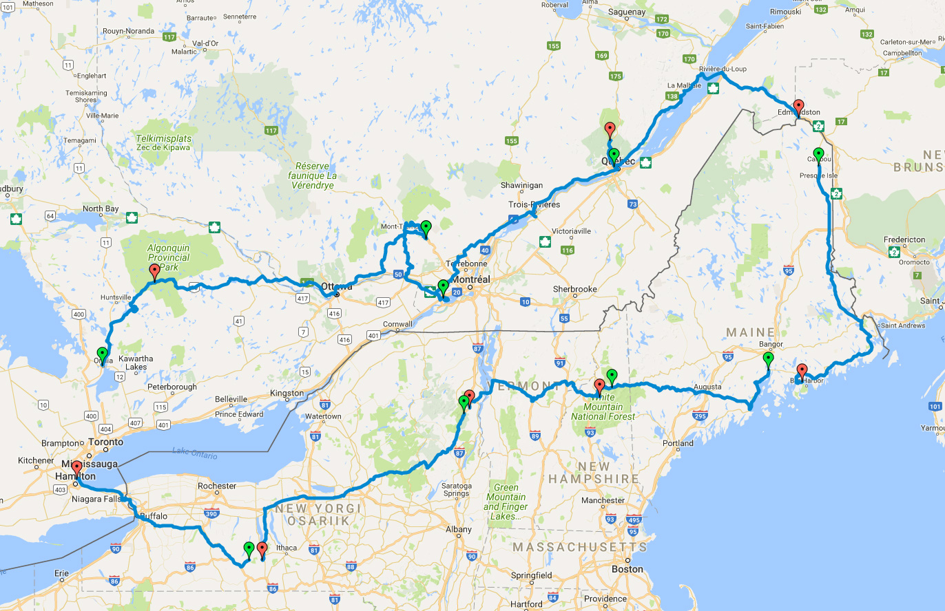 Kanada (Ontario, Quebec) ja USA (Maine, New Hampshire, Vermont, New York state) Juuli 2018.