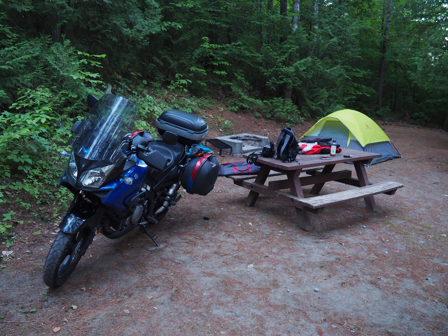 Panin siis Toronto eeslinnast ajama ja esimeseks eesmärgiks oli linnavööndist välja jõuda. Sisuliselt on seal piiri ääres Torontost Montrealini välja üks lai kiirtee ja selle ümber üks suur linn - ei tundunud liiga huvitav. Eriti sellise kuumalainega, mis sel ajal Kanadas oli - +35 kraadi varjus oli üsna igapäevane. Rihtisin rohkem põhja poole, kus on mõnusad külakesed ja rahvuspargid. Esimese öö olingi Algonquini rahvuspargis. Poole tee pealt ostsin kohalikust Motoneti sarnasest poest telkimisvarustuse ja see osutus väga heaks mõtteks. Motellide ja hotellidega oli Juulis totaalne ikaldus ja kui midagi ka oli, siis olid hinnad laes. Kämpasid on seal aga meeletus koguses ja kuigi telkimine on kanadalaste rahvusspordiala, siis mõne vaiksema kohakese leidis alati. Muidugi ka kämpingute hinnad olid võrreldes Euroopa kämpadega üsna kõrged (12-28€ öö), aga neid oli palju ja nad olid korralikud - dušš kulus sellise kuumaga väga ära ja mõnes kohas sai ka kohvi ja praetud muna hommikuks. Metsik telkimine on keelatud aga teoreetiliselt võimalik, kui leida sobiv koht. Selliste kohtade leidmine võtab aga aega ja seetõttu jäi see mul proovimata.
