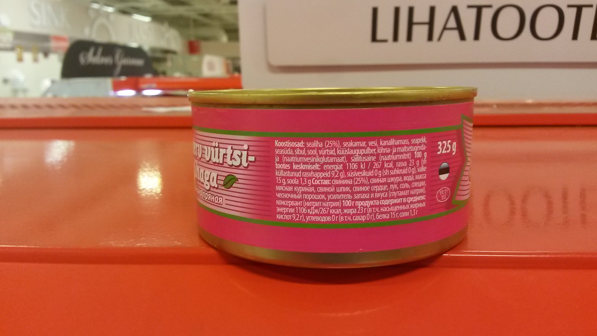 Kui linna hästivarustatud poodi satun siis tsekkan. Enam ei mäleta. Muide, väga head on ka kodus autoklaavis tehtud "sealiha omas mahlas". Ainult et see kultuur hakkab vist tasapisi ära kaduma.