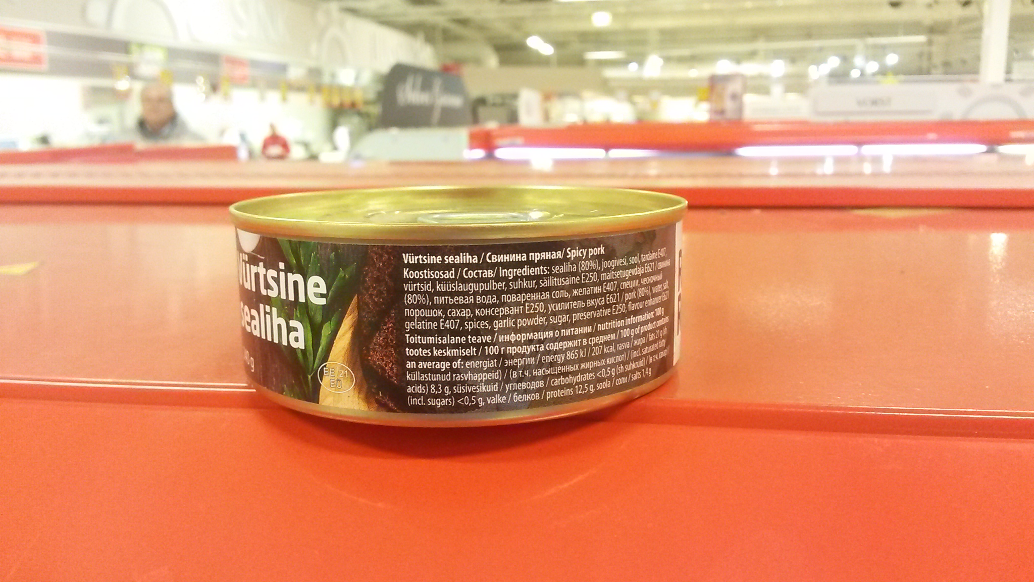 Kui linna hästivarustatud poodi satun siis tsekkan. Enam ei mäleta. Muide, väga head on ka kodus autoklaavis tehtud "sealiha omas mahlas". Ainult et see kultuur hakkab vist tasapisi ära kaduma.