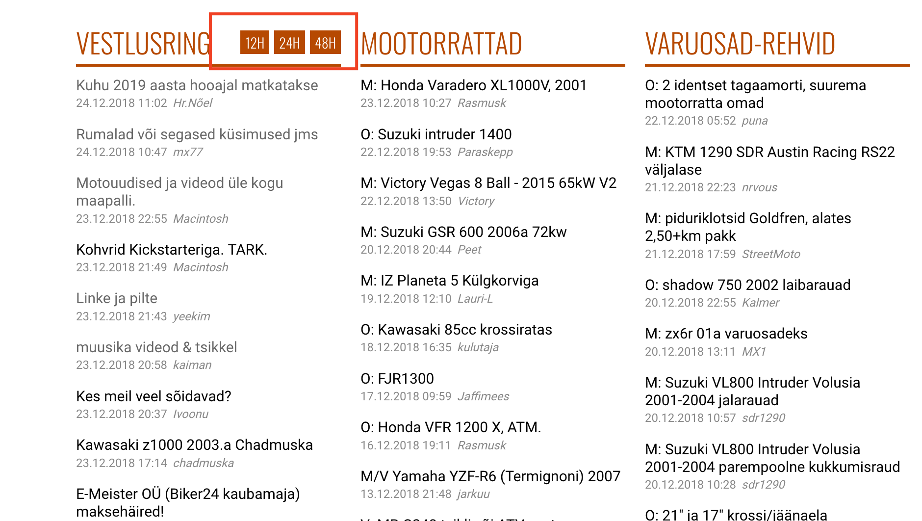 Kes kasutab esilehel olevat ajalist filtreerimist: 12h/24h/48h? Palun vasta küsitlusele.
