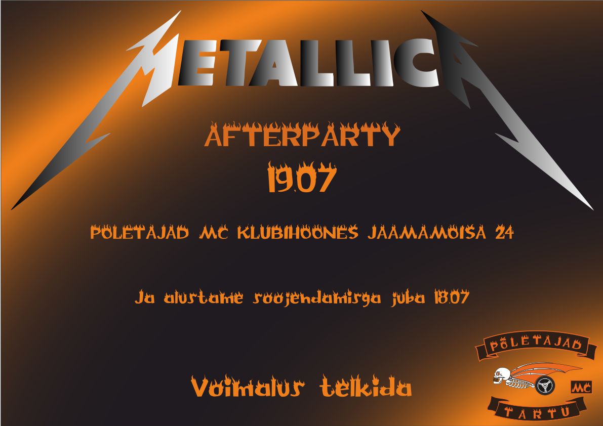 Re: Metallica kontserdi järelpidu (afterparty) 18-19 juuli 2019