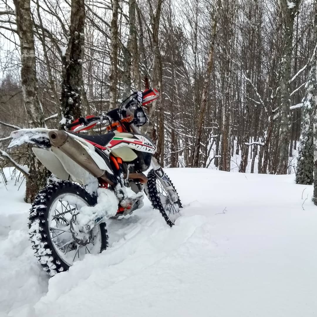 Pilt on tehtud vist kõige esimesel sõidul, mis ma sellega tegin, lund oli silmini ja üleüldse oli kogu tänavune talv endurosõidu seisukohast üsna vaevaline. Põhimõtteliselt võrreldes mu eelmise 125-se krossikaga on 350 küll suur ja võimas ja uhke, samuti läksid tulemused natuke paremaks, aga neljataktilise iseloom nõudis pikalt harjumist, samas mida sa seal harjud, kui tsikkel koguaeg kõrvuni lumes kinni on. Biitsepsitele teeb selline asi muidugi ainult head ![]()