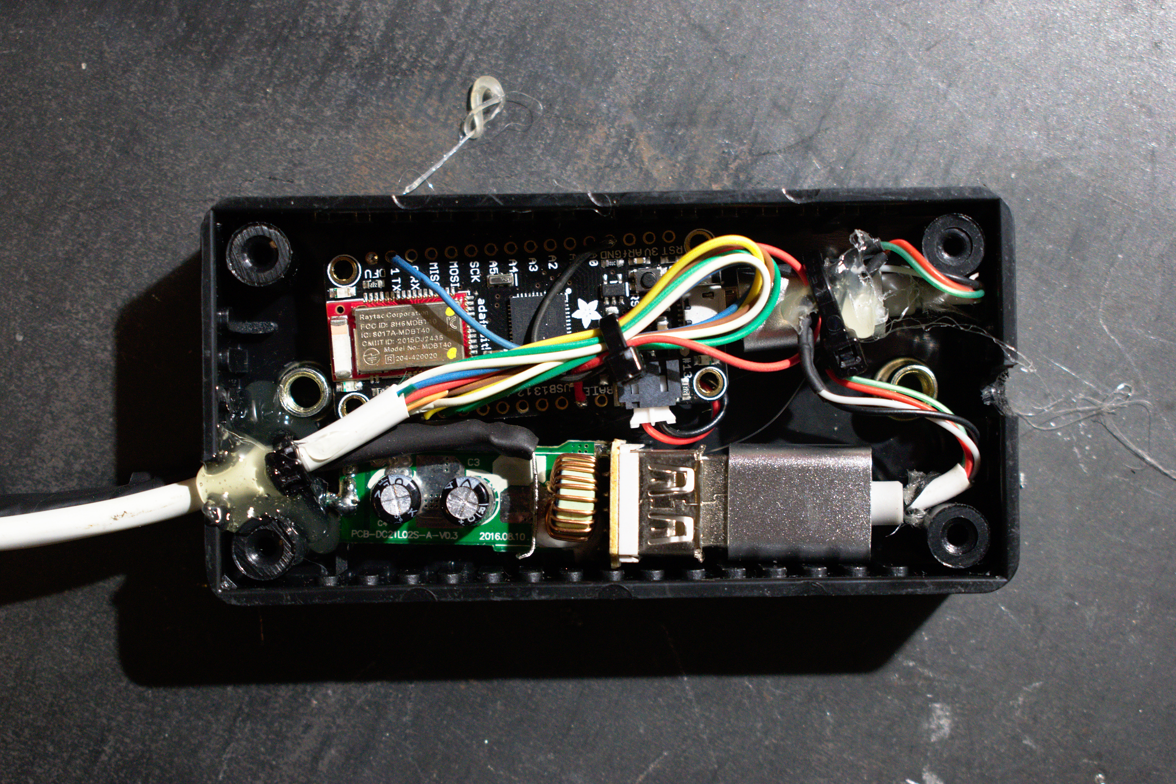 Lammutasin ka ühe 12V USB laadija ära ja toppisin mõlemad karpi, jäi päris viisakas. Ühendamiseks tuli valmistada superlühike micro-USB juhe, mul on selliseid küll asjadega kaasa tulnud, aga kõik on eri aegadel kellelegi hädalisele ära antud - nagunii pole endal kunagi vaja ju