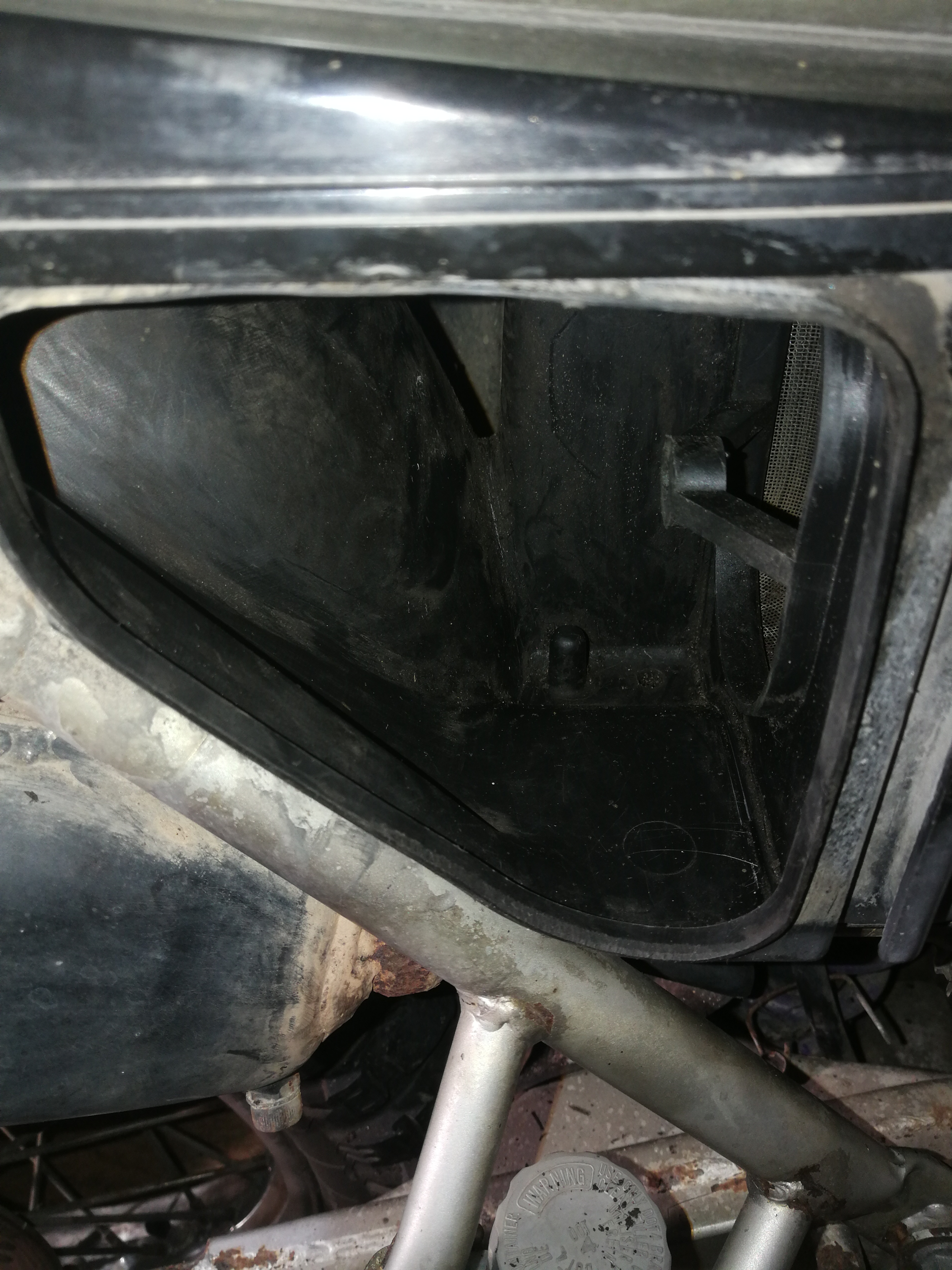 Aega täitsin õhufiltri pesa puhastamisega. Kusagilt jäi meelde, et selle kopsiku põhjas on ka vee äravoolu ava. Isegi selle leidsin üles ning pidin peenikese kruvikeeraja appi võtma, et see saastast, mis tundus olevat värske asfalt, puhtaks surkida: