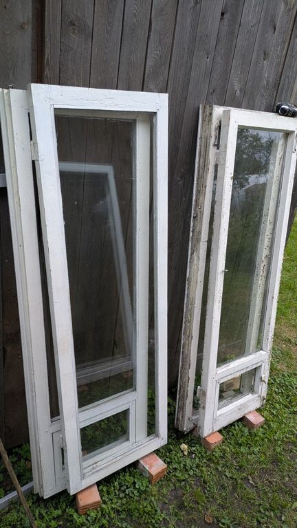 Kolmene topelt komplekt puitaknaid. Klaasid terved. Keskmine aken suurem, äärmised avatavad. Keskmise raami laius 660mm, äärmistel 490mm, kõrgus 1490mm - https://soov.ee/25917616-aknad/details.html