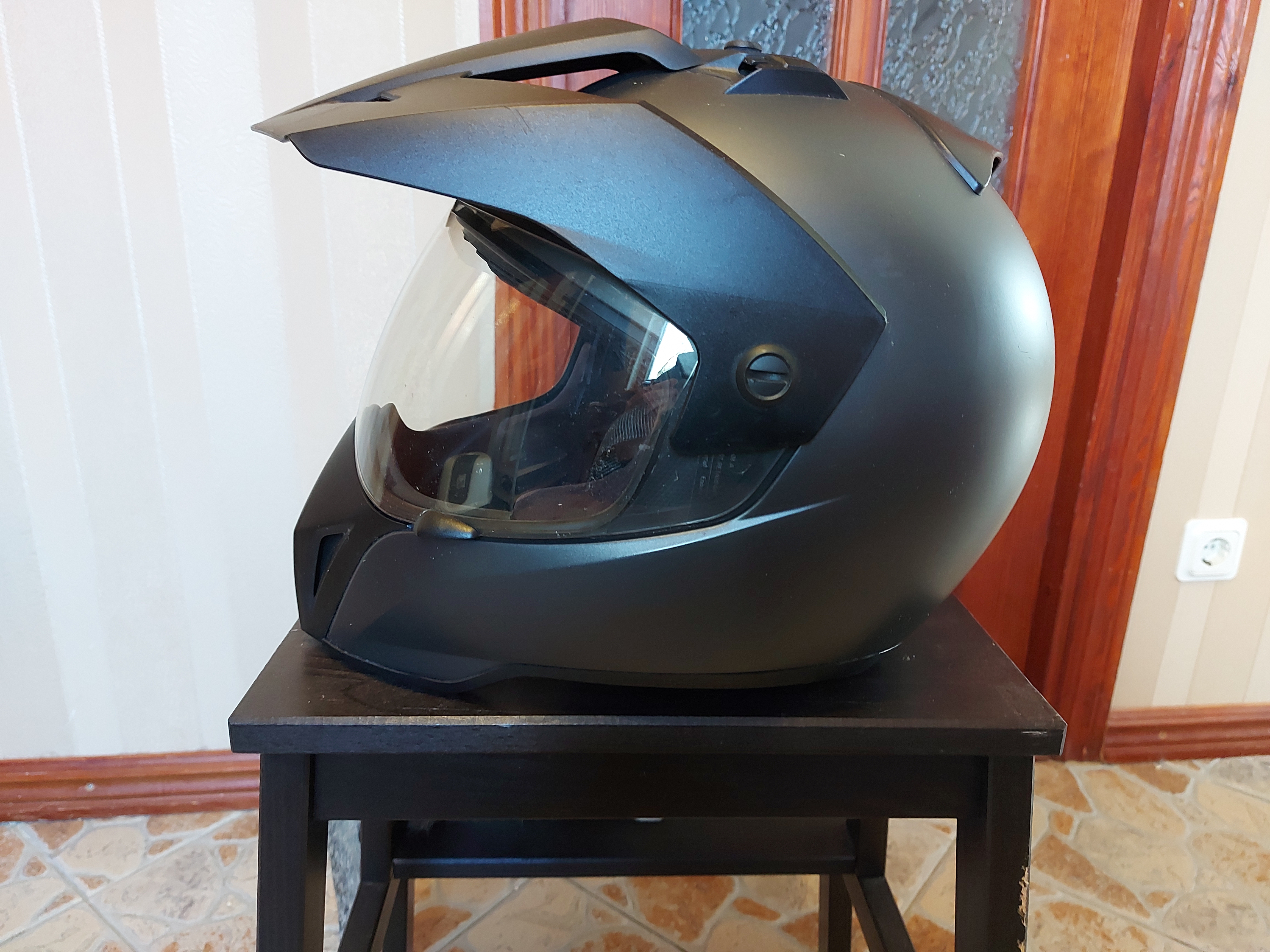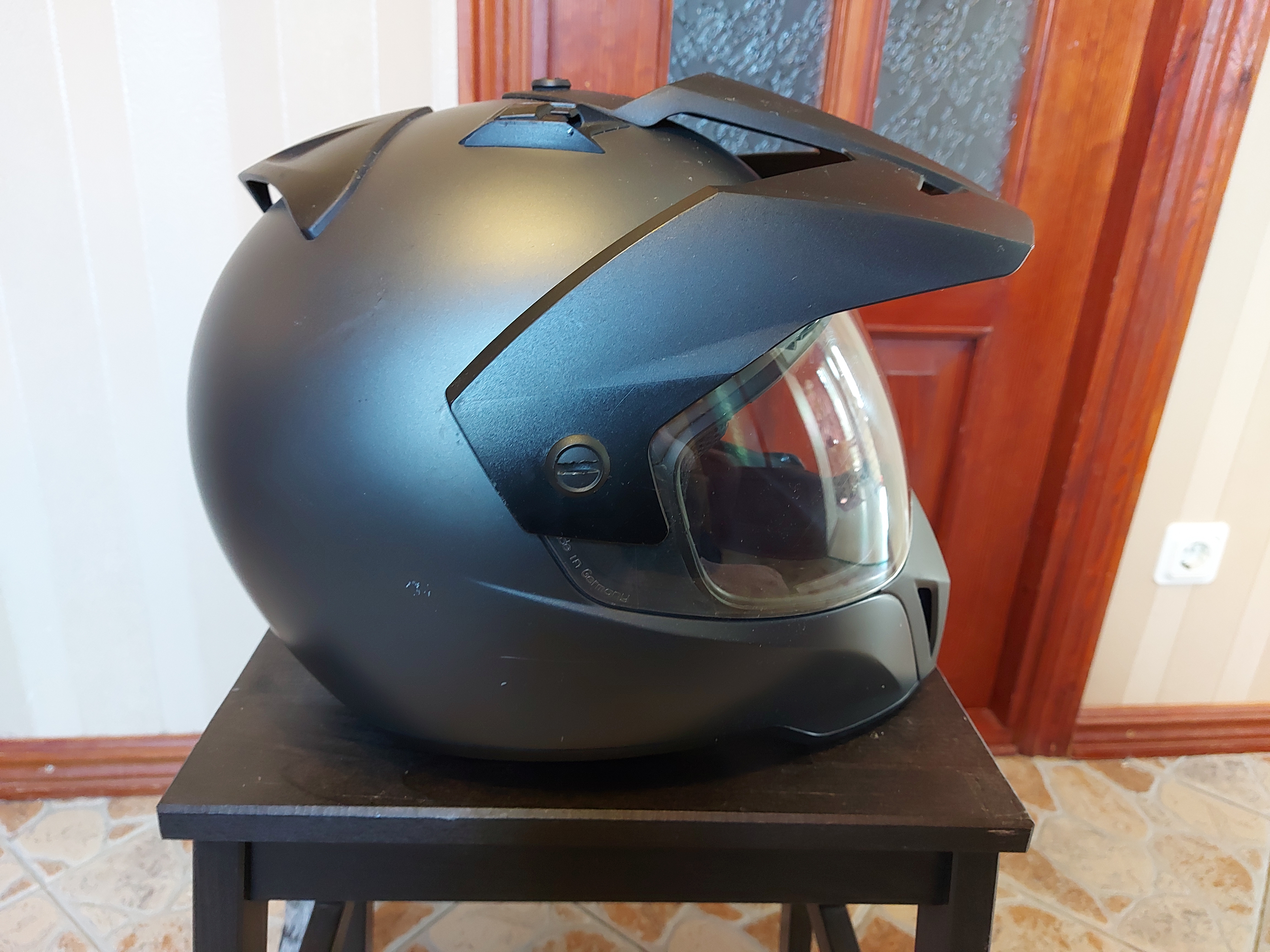 Kirjeldus:Tumehall suurus 59/60, kaasa kott ja kasutusraamat, üks kergemaid kiivreid, koos visiirga 1380g.