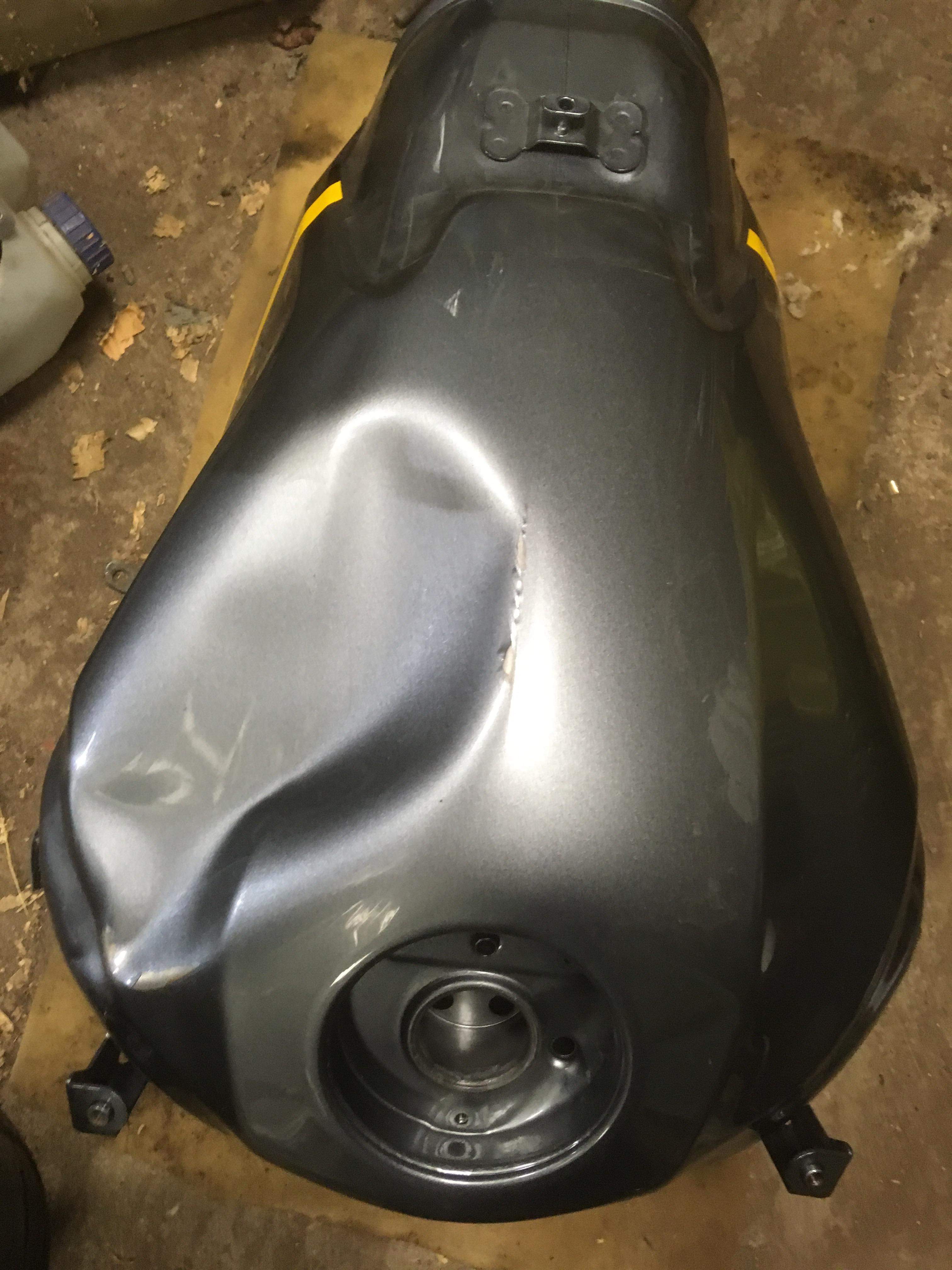 Ma ka kaalusin igat pidi, hetkel kõige mõistlikum tundub ebayst/lammutusest enamvähem terve paak max soodsa hinnaga (üks oli saadaval tillukese mõlgiga, SV650 mul teemaks) ja siis see ise ära värvida või lasta värvida. Kui lasta värvida, võtavad mõlgi ka välja sama töö raames, saaks uueväärse tulemuse lausa.