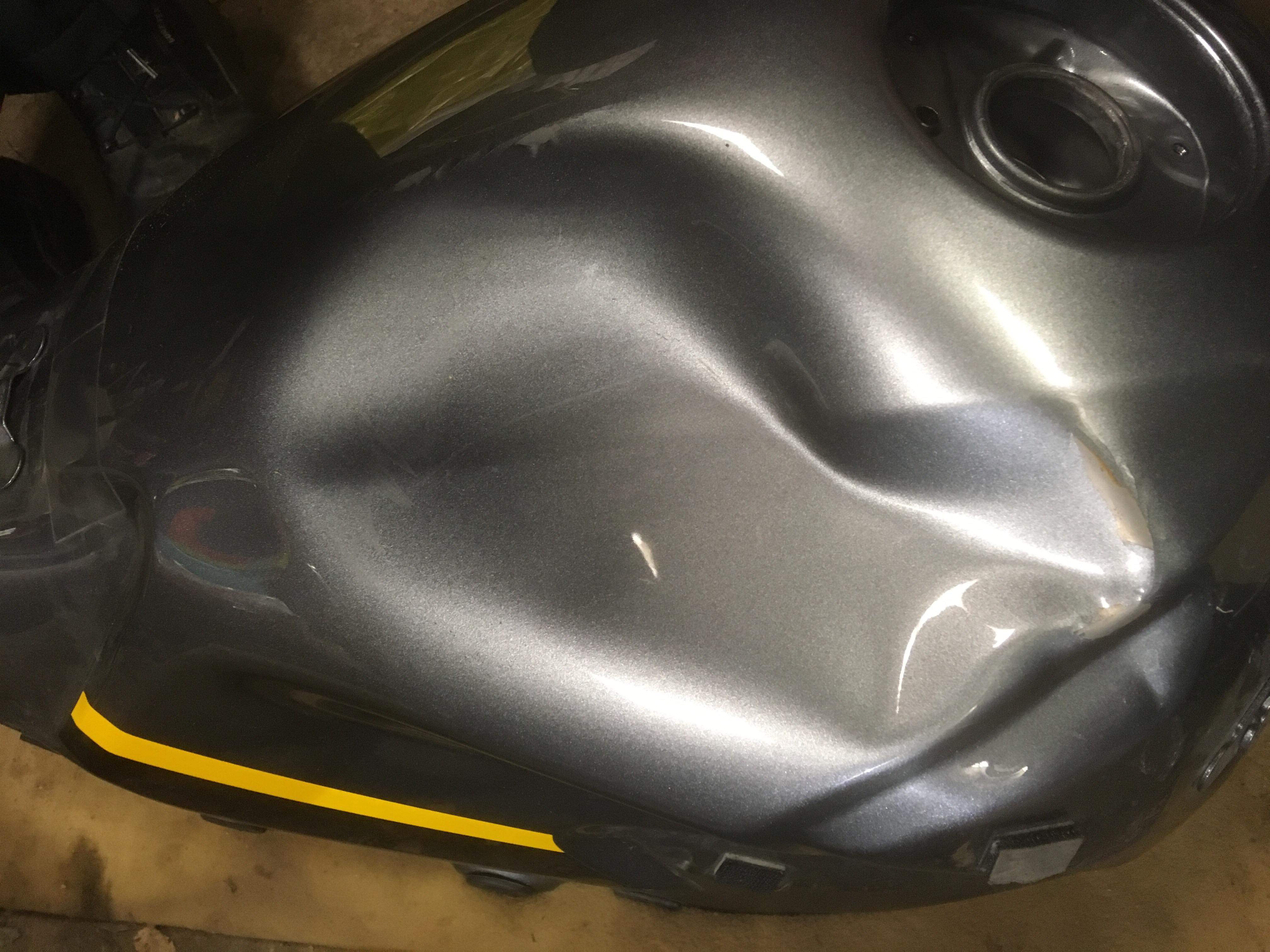 Enda VFR800-l oli sellest hullem terava sisenurgaga sügav mõlk paagis + paar pisemat kõrval. Sain sama vastuse, et mõlgimehed jms on ainult kerge teenistuse peal väljas. Ehk siis kui sooja liimiga ei anna välja tõmmata, siis nemad üldse ette ei võta.