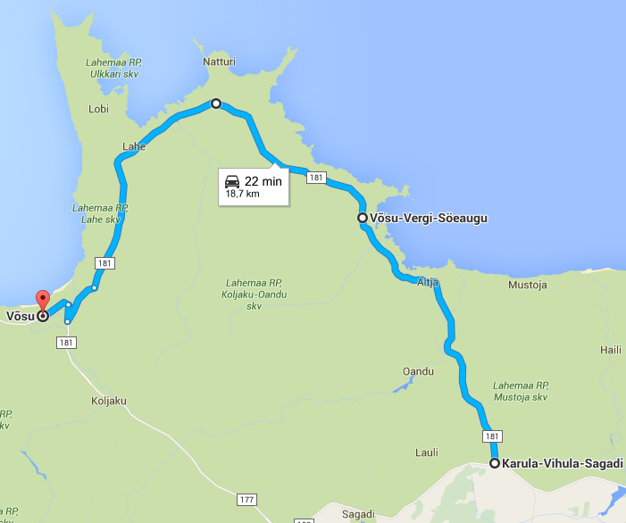 Siia teeks parandussoovituse: Vihasoo juurest ära pööra Võsu peale, vaid sõida otse edasi Palmse suunas. Palmse mõisast möödas, sõida kuni paremat kätt tee ääres on Palmse Kohvikann nimeline söögikoht, saad hea kosutava kõhutäie. Seejärel uuesti mõisa poole tagasi ja hetke pärast pööra paremale Sagadi suunas. Siis 2 varianti, kas otse Sagadi mõisani ning sealt Altja peale või enne Sagadit suure teega ristudes vasakule Koljaku suunas ning siis saab eelpool soovitatud ringi jätkata.