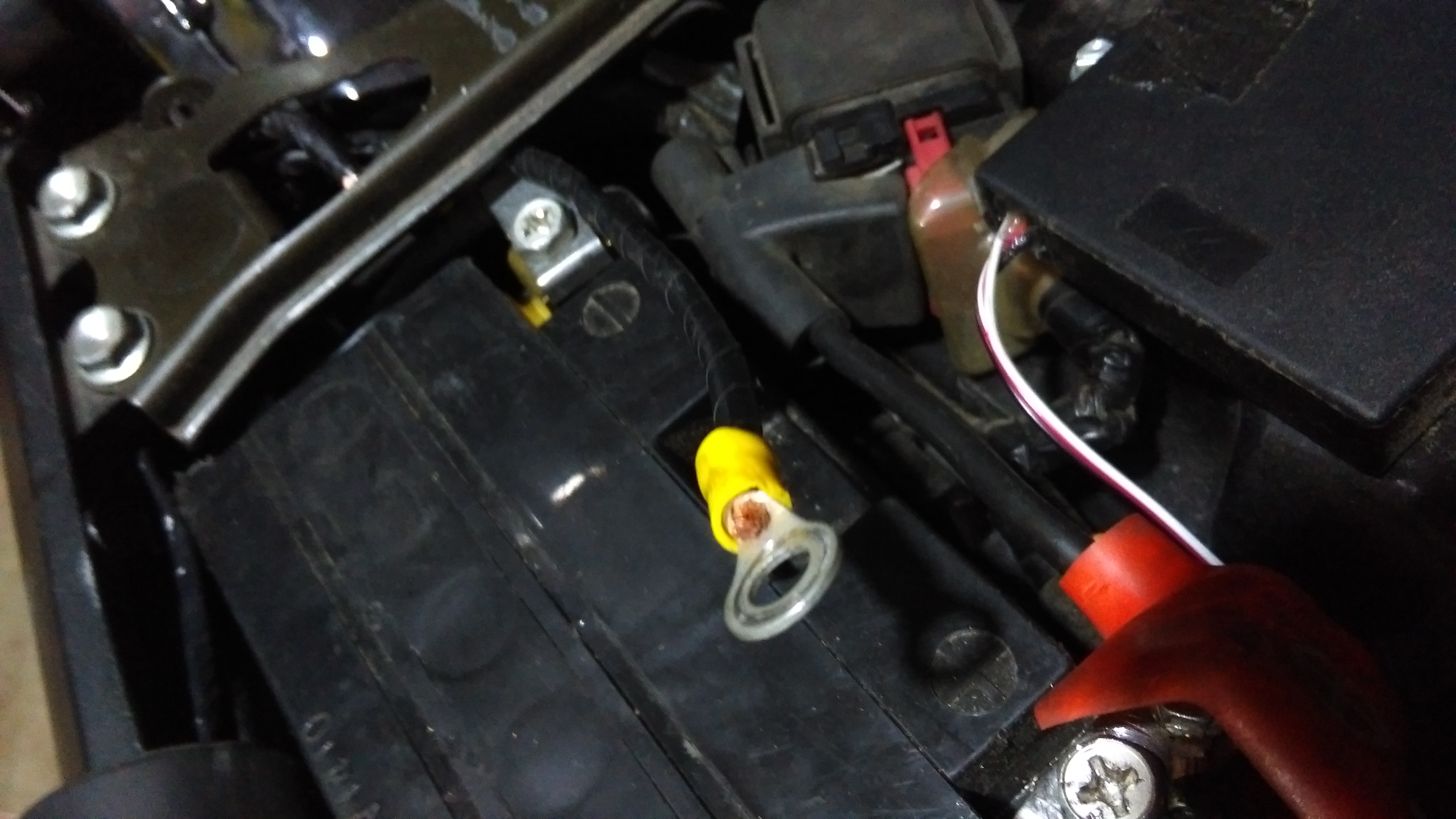 Ma vedasin oma VTR-dele lihtsalt aku plussist parajalt jämeda kaabli ja peitsin ta sobivasse kohta gondli [Motobot: õige on "gondli"] alla ,kui vaja sai kohe kätte ja kasutada,nii laadida kui käivitada.