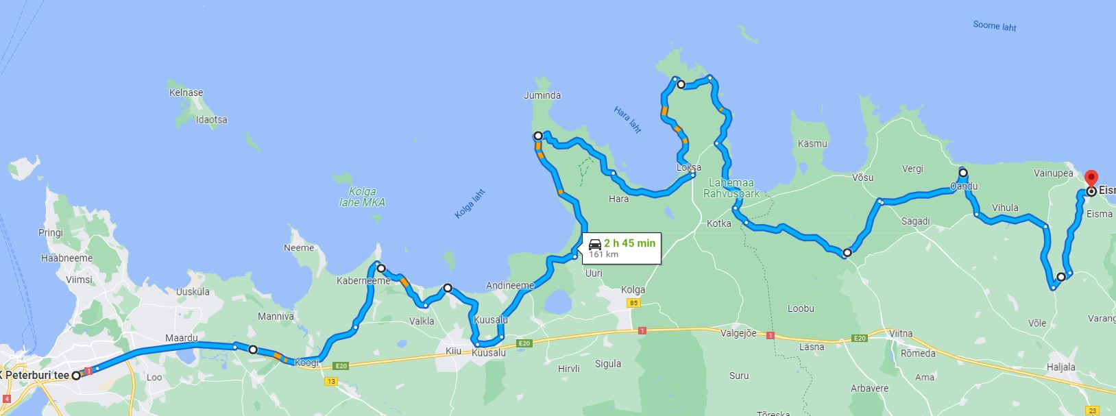 Maps näitab 2 tundi ja 45 minutit. Palju sellest kiiremini või aeglasemalt sõidetakse tavaliselt?