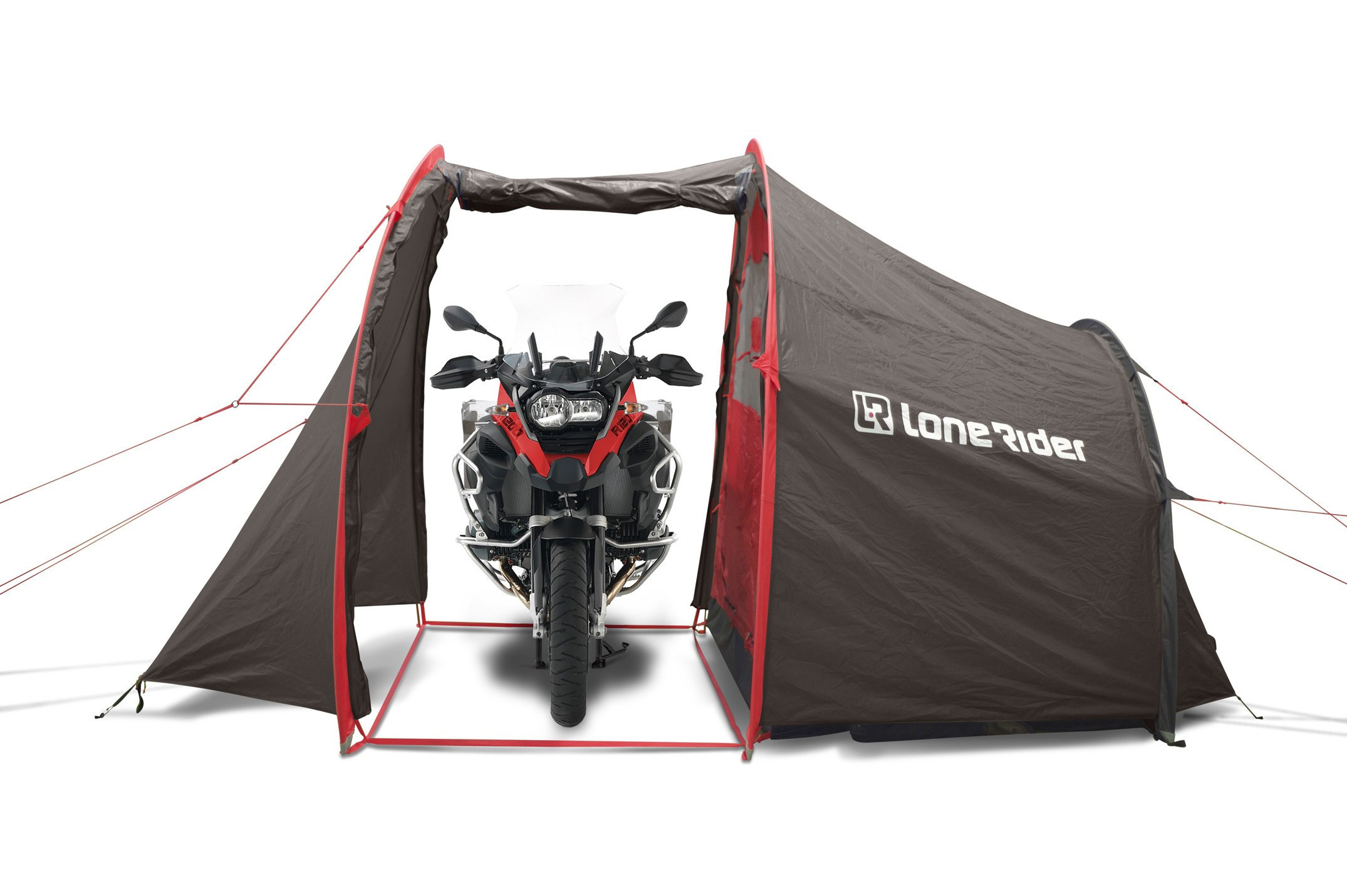 Mina valiks väiksemate mõõtmetega tavalise eeskojaga telgi. Kohvrid saab ju vajadusel ka tsiklilt maha võtta ja telki viia. Ise olen võtnud mõnikord eraldi koormakatte kaasa, millest saab vajadusel vihmaga varjualuse teha või maapinnale piknikutekiks laotada. Võtab vähem ruumi ja on universaalsem.