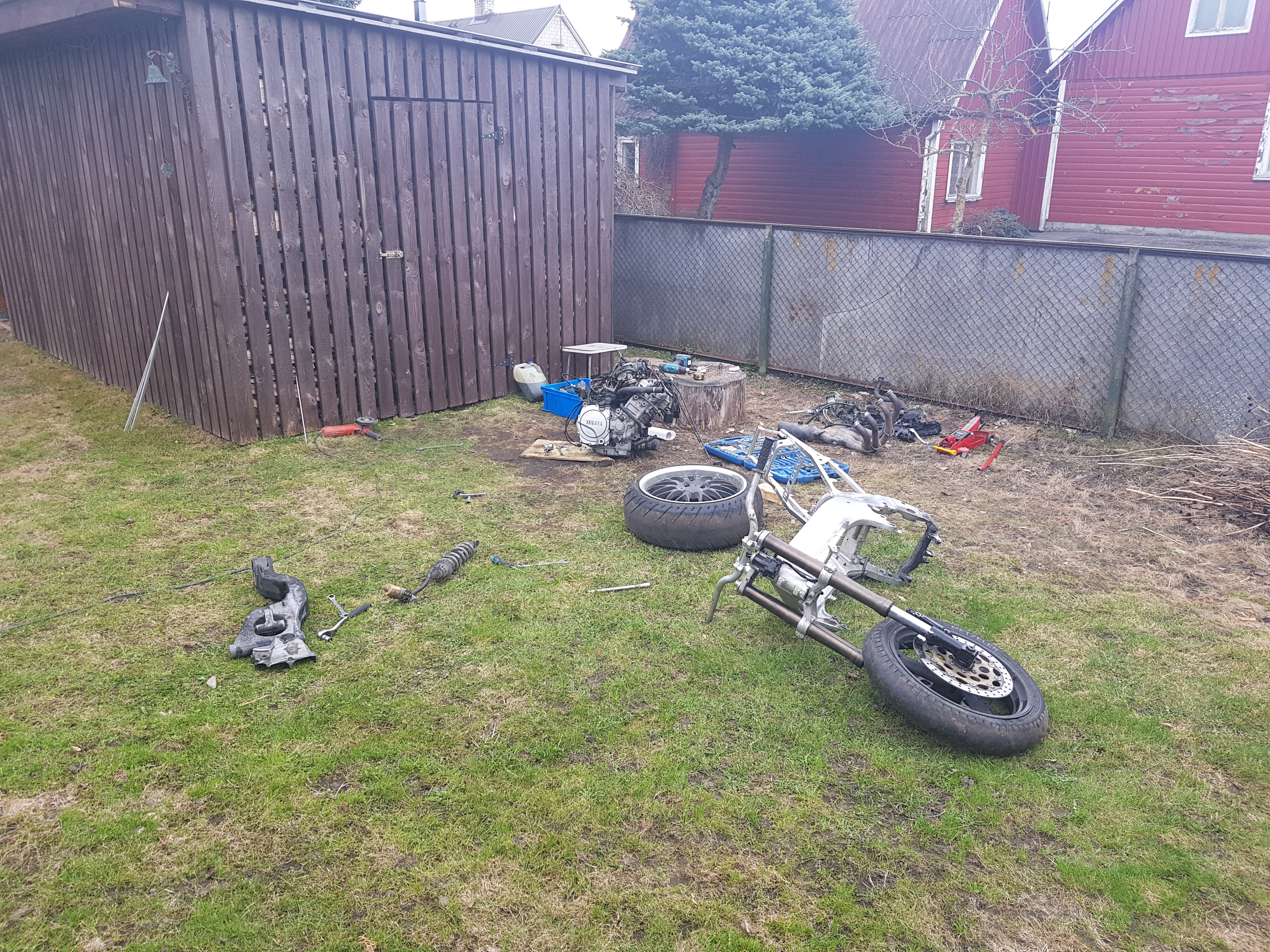 Ilmad ilusad ja projekt edeneb. Nv käis keevitaja kohapeal ja sai sabaraami paika. Ega muud geha polnud, kui ratas laiali ja asjad pritsi saata.