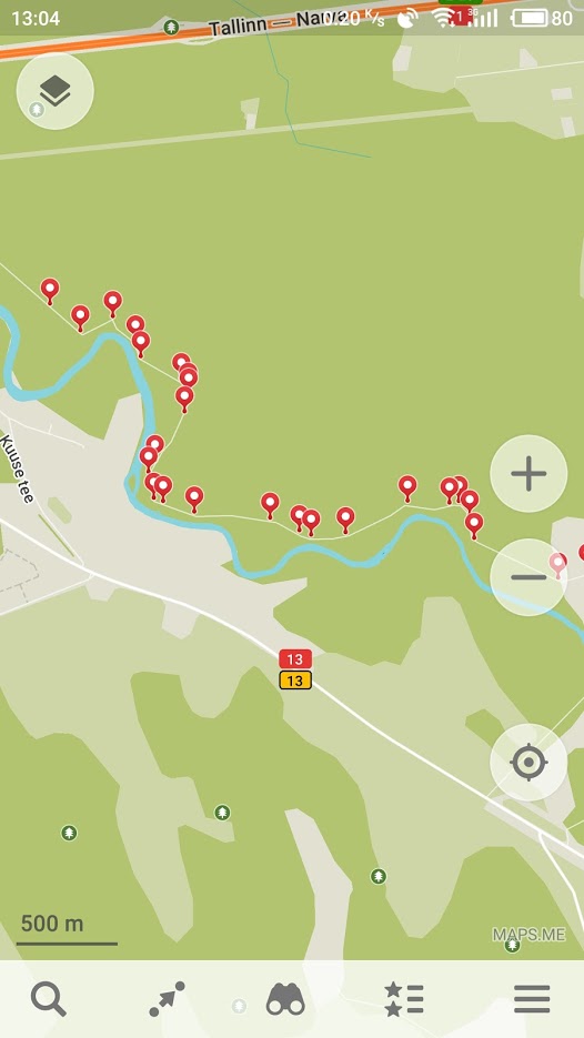 Avastasin täna, et Maps.me võimadlab KLM faile sisse importida. Võtab bookmarkidesse. Teekonda joonena välja ei joonista aga rajapunktid kuvab kenasti välja, seega igati sobiv metsaradadel orienteerumiseks. Maps.me aluskaardiks on Open Street Maps (sama kaart mis OSMAND).